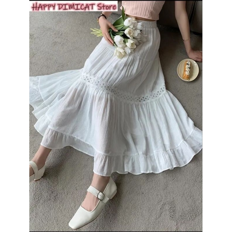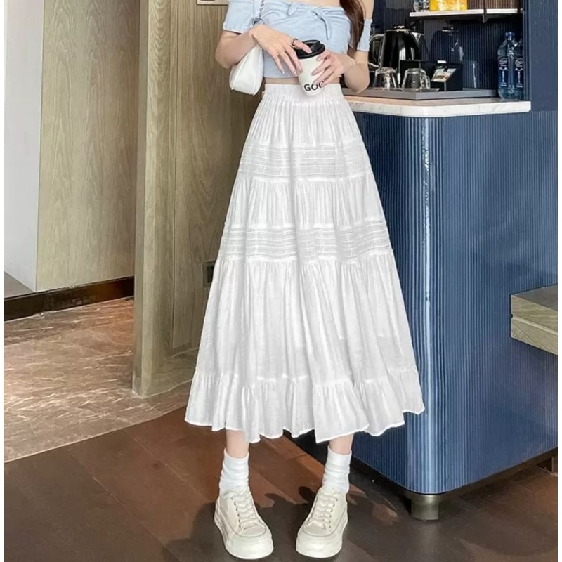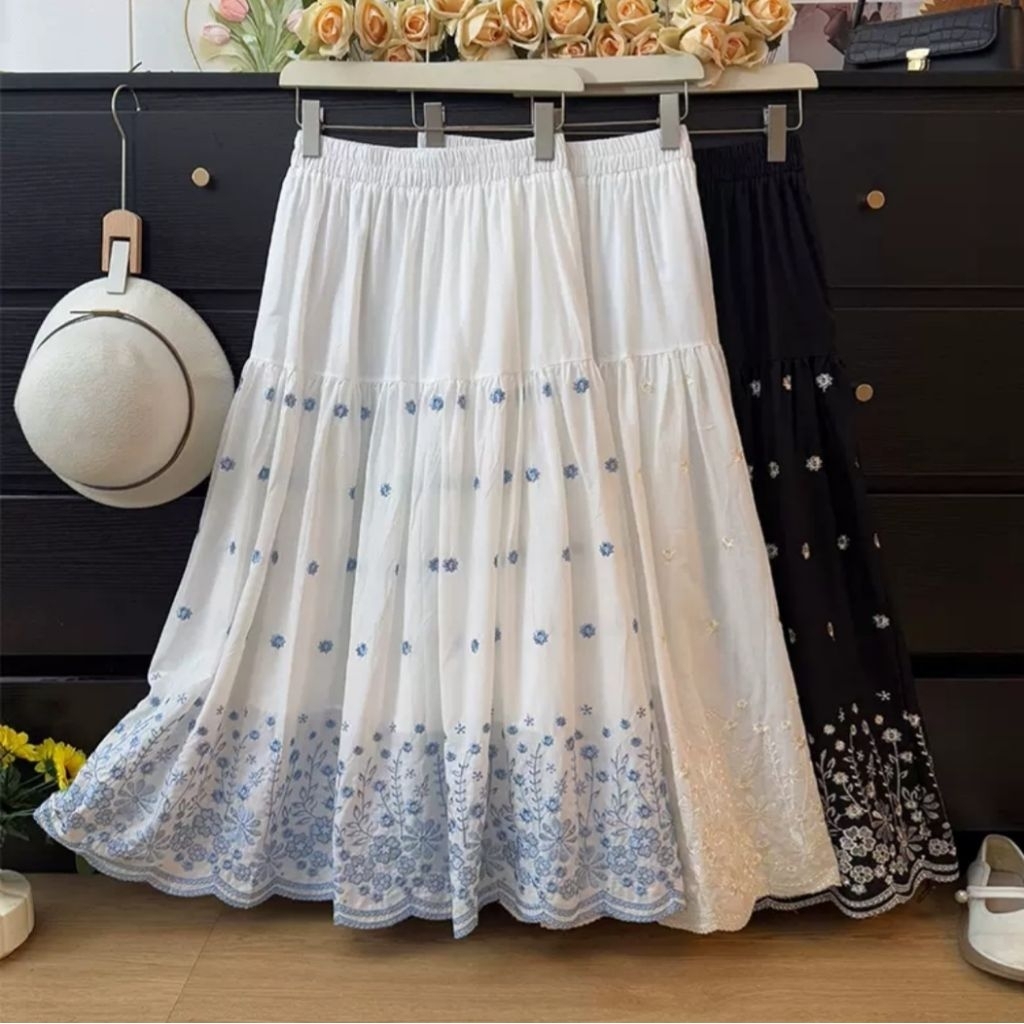 Rok Panjang Cewek Bahan Katun Bordir Import Skirt Panjang Wanita