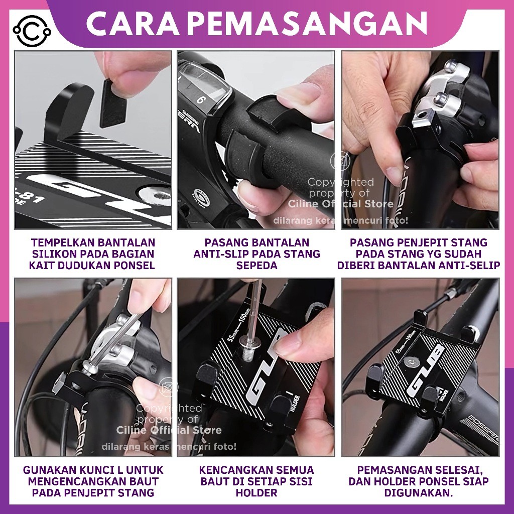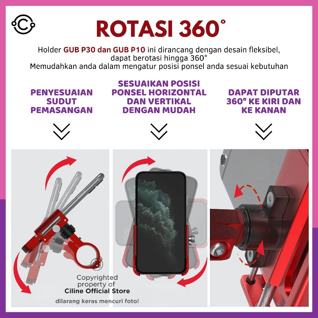 Gub Holder Phone Holder Hp Motor Dudukan Ponsel Aluminium Aloy Holder Handphone Motor