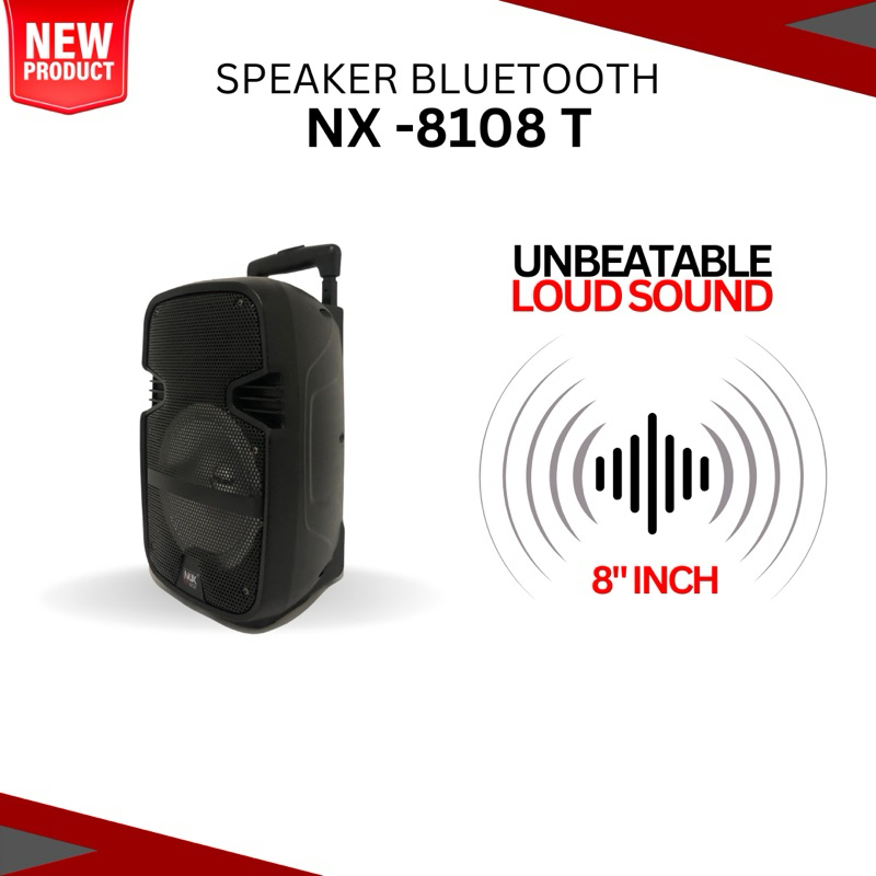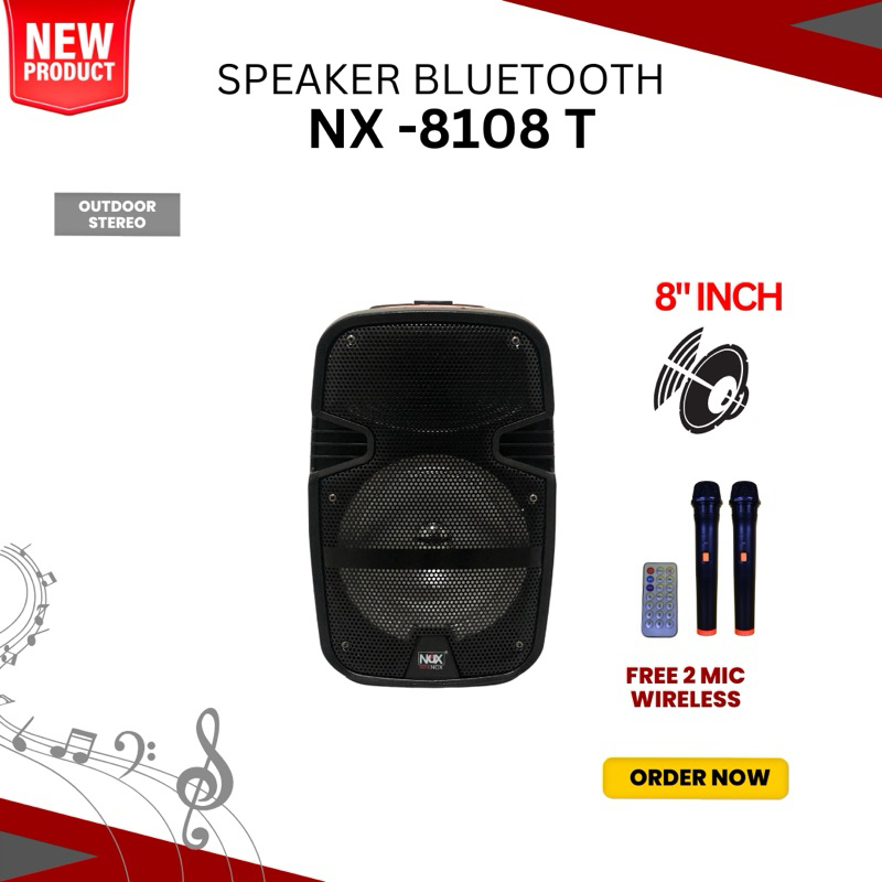 Speaker Bluetooth Karaoke Size 8 Inch Nixnox Nx-8108 Free 2 Mic Wireless Speaker Fullbass