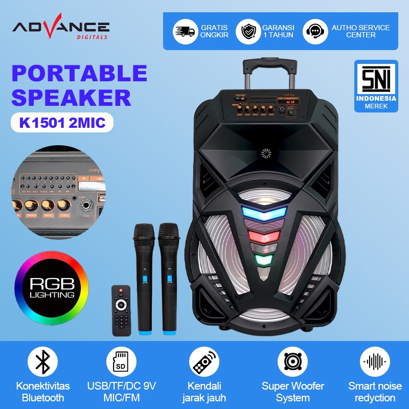Advance K-1501N Speaker Aktif Bluetooth 15 Inch Bass Salon (Free 2 Mic Wireless ) Speaker Meeting 15" Inch Garansi Resmi