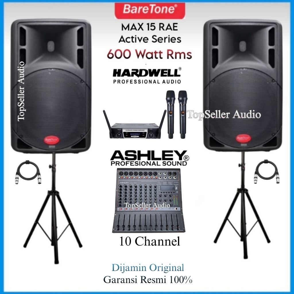 Paket Sound System Speaker Aktif 15 Inch Baretone Max15Rae Mixer Ashley 10 Channel Bluetooth Mic 2 Wireless Hardwell Ga