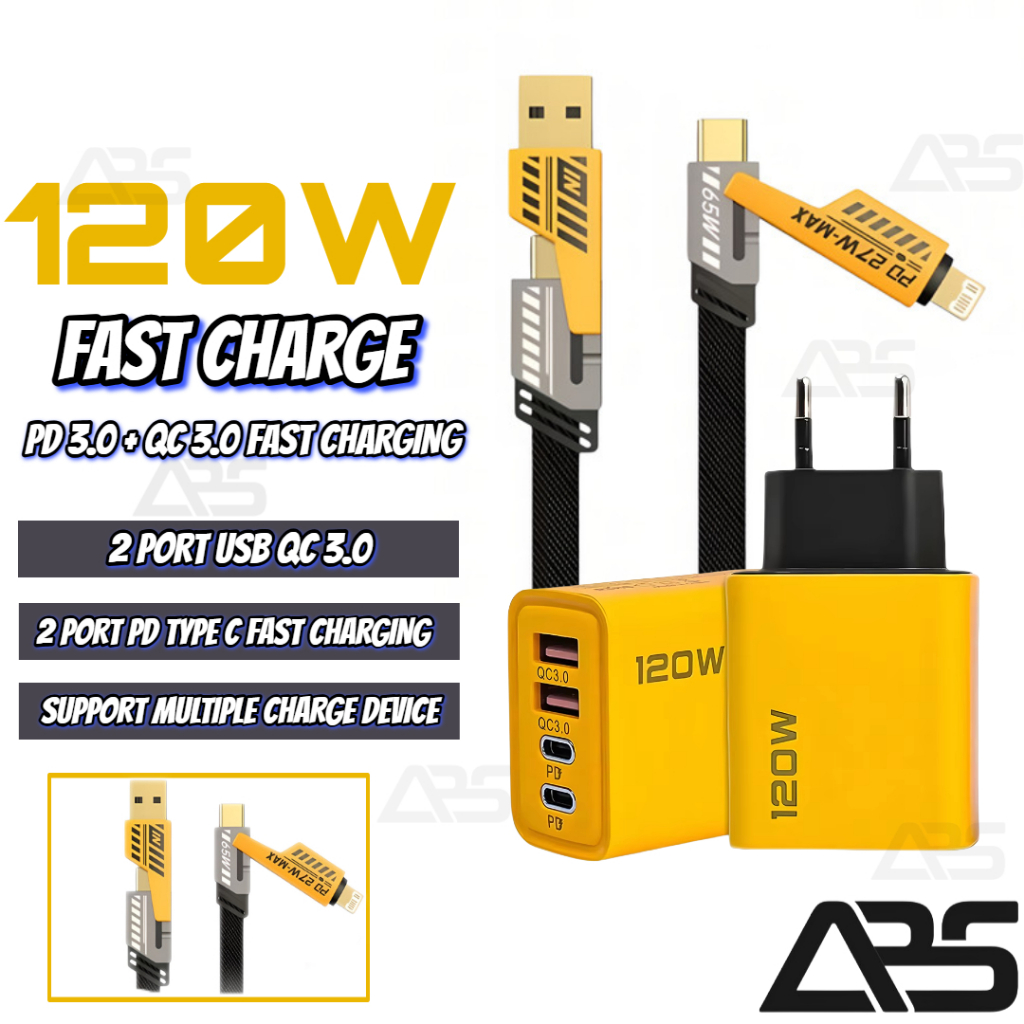 [Star] Charger 120W Batok 120W + Kabel 4 in 1 65W Fast Charging PD TYPE C TO C 4 Port Kabel Casan 4in1 Tipe C USB iOS Li