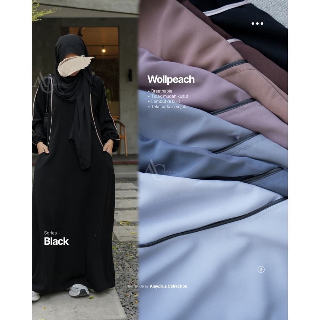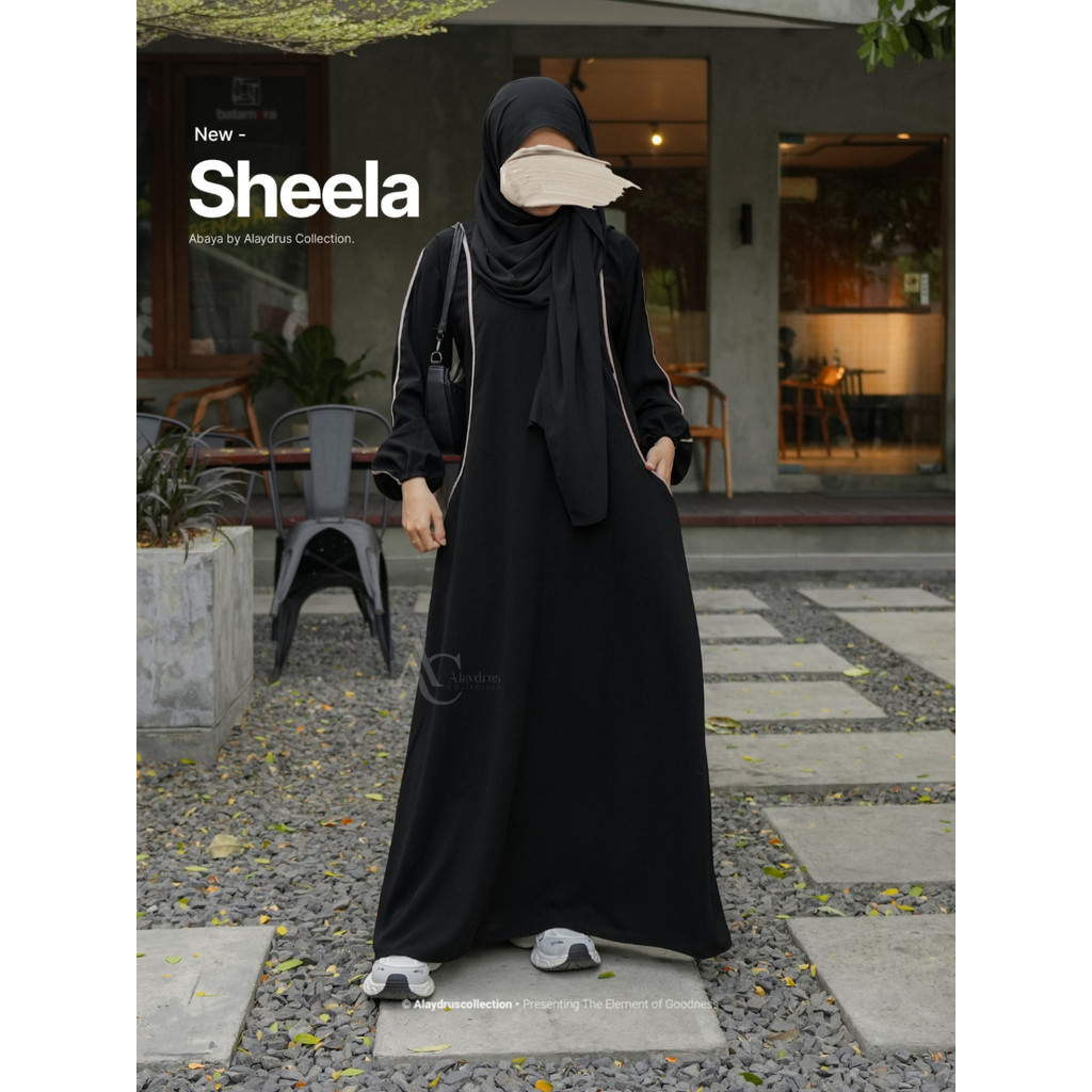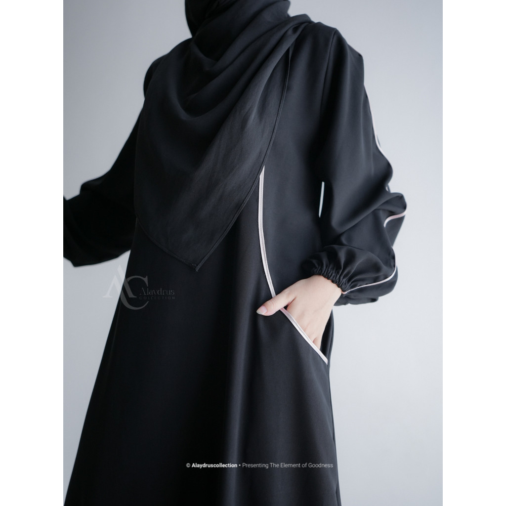 Alaydrus Collection Abaya Hitam Turkey Sheela Gamis Syari Muslimah Bahan Jetblack Hitam Saku Samping