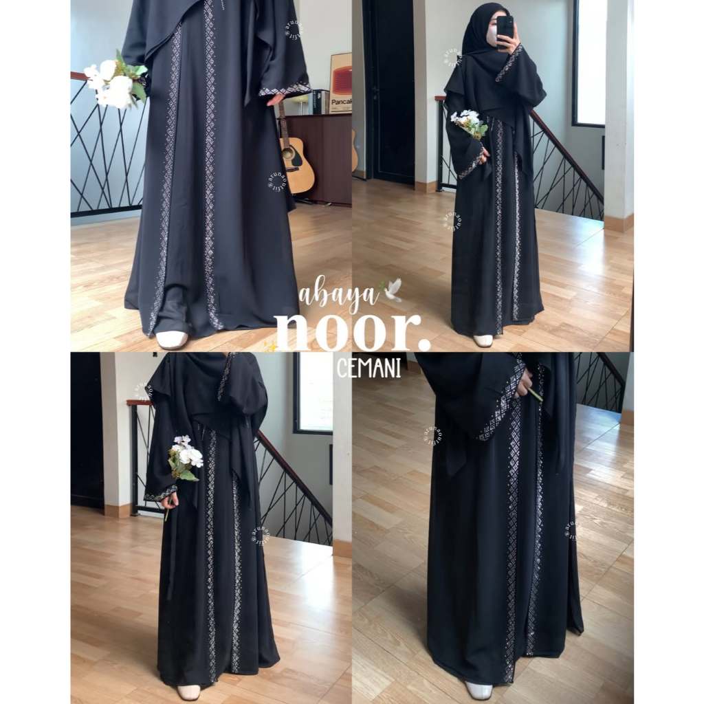 Noor Abaya Ceruty HQ Resleting Depan Arunaoutfit