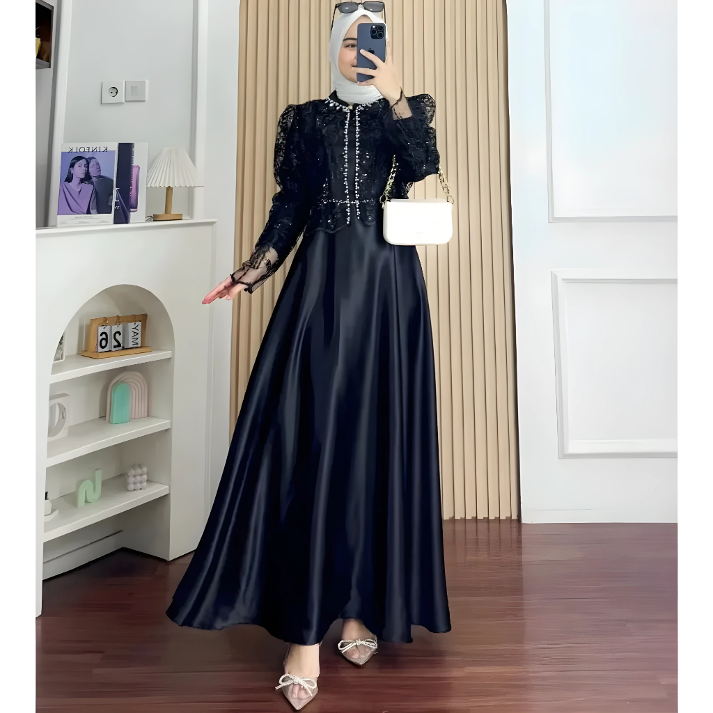 Sakura dress gamis pesta brukat terlariis 2026 Silk Premium Mix brukat Aplikasi Payet Mutiara Brukat