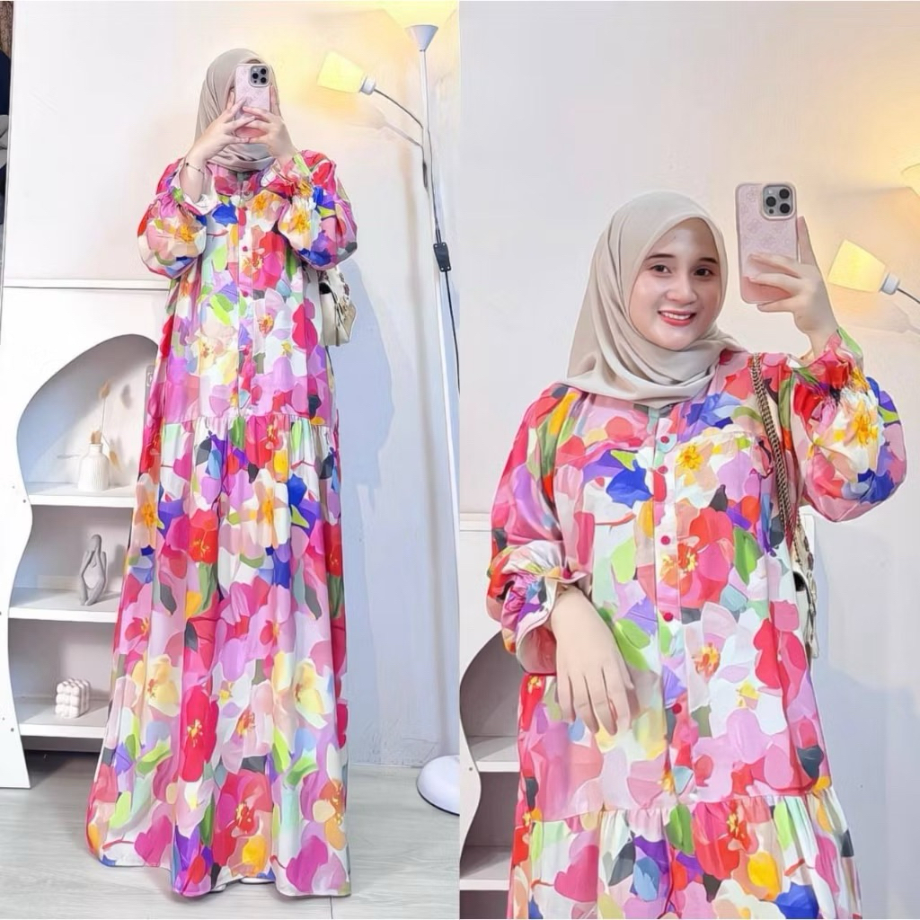 PREMIUM//GAMIS SUSUN RAYON MOTIF KEKINIAN//DRESS MEWAH MURAH BERKWALITAS BUSUI LD 110-115