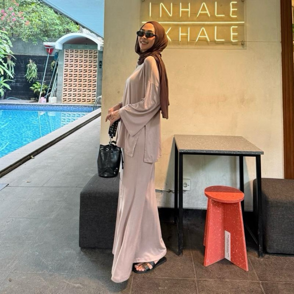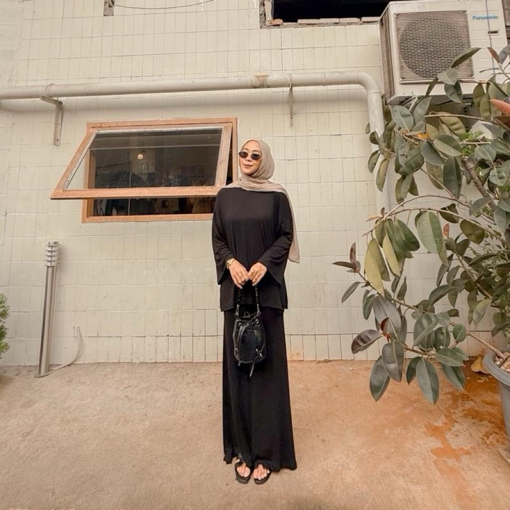 EL NORA SETELAN BAJU OVERSIZE DAN ROK DUYUNG BAHAN KAOS RAYON ADEM HIJAB FRIENDLY TANGAN PANJANG