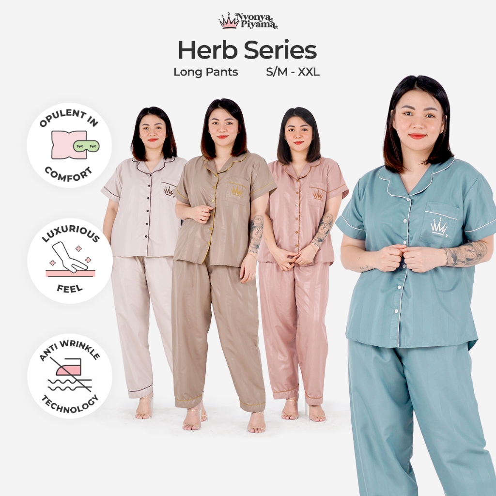 [BEST SELLER] Nyonya Piyama Poly Bamboo Set Celana Panjang (Polos Herb Series) VOL 1