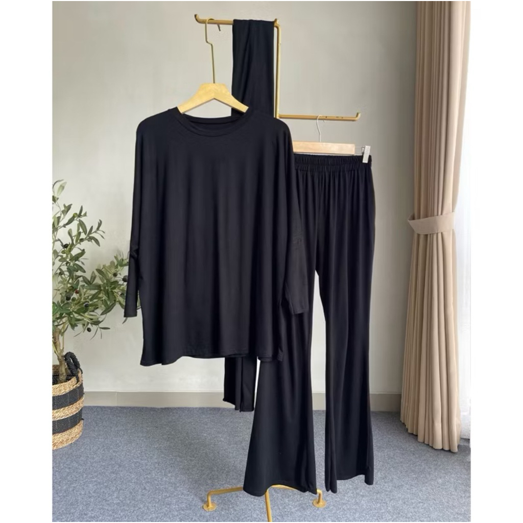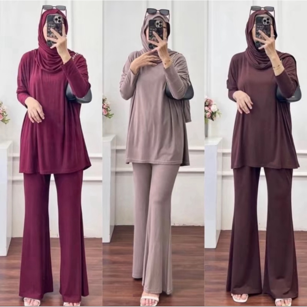 Everly Set Cutbray Free Hijab Pashmina/Setelan Celana dan Hijab Muslim/Basic Daily Set/Celana Panjang Cut Bray/Atasan Wanita Oversize
