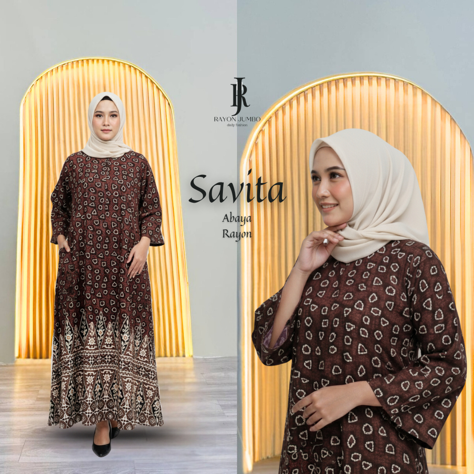 Savita Gamis Jumbo LD 140 Rayon Premium Resleting Depan - Abaya Batik Elegan Kondangan Pengajian
