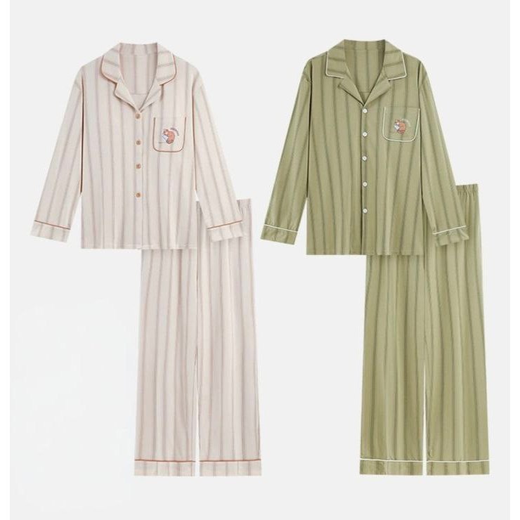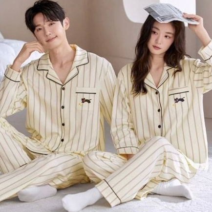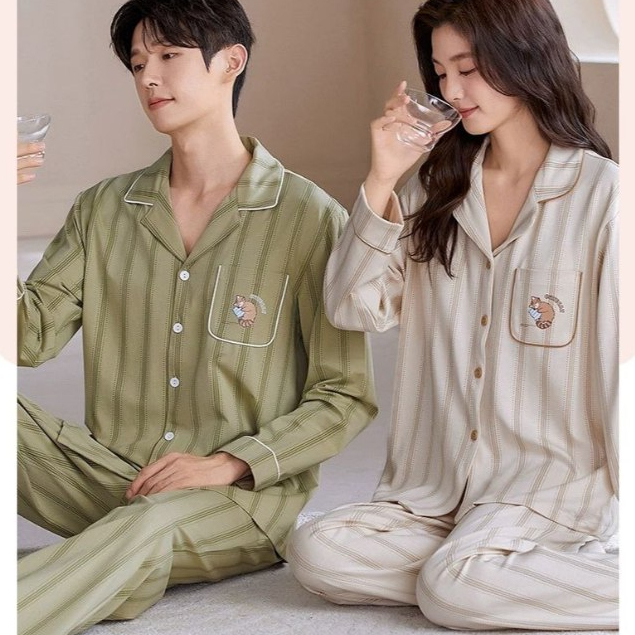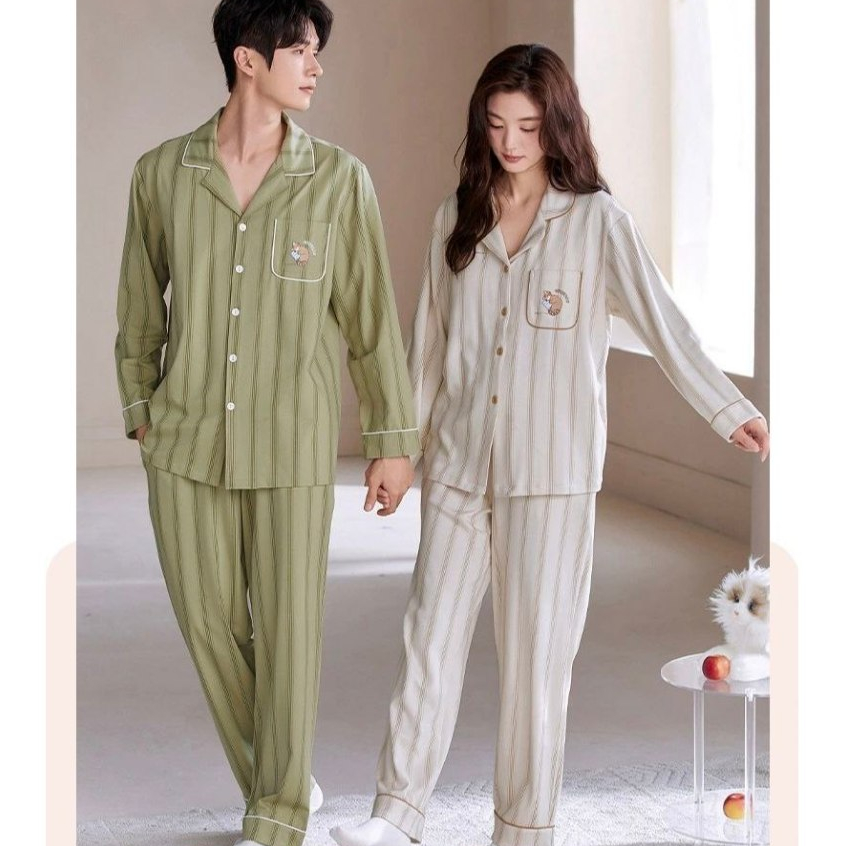 Baju Tidur Couple Lengan Panjang Piyama Premium Suami Istri Korean Style Braless