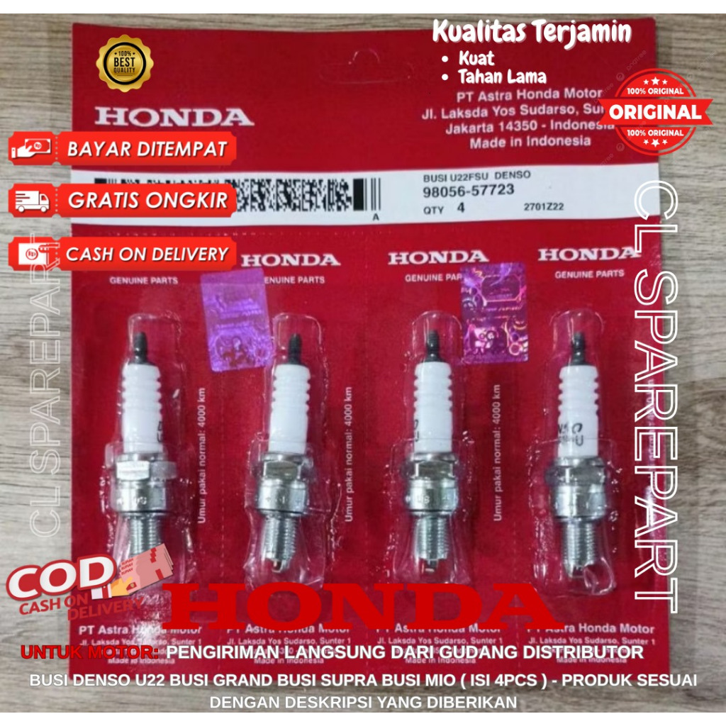 BUSI DENSO U22 BUSI GRAND BUSI SUPRA BUSI MIO ( ISI 4PCS )