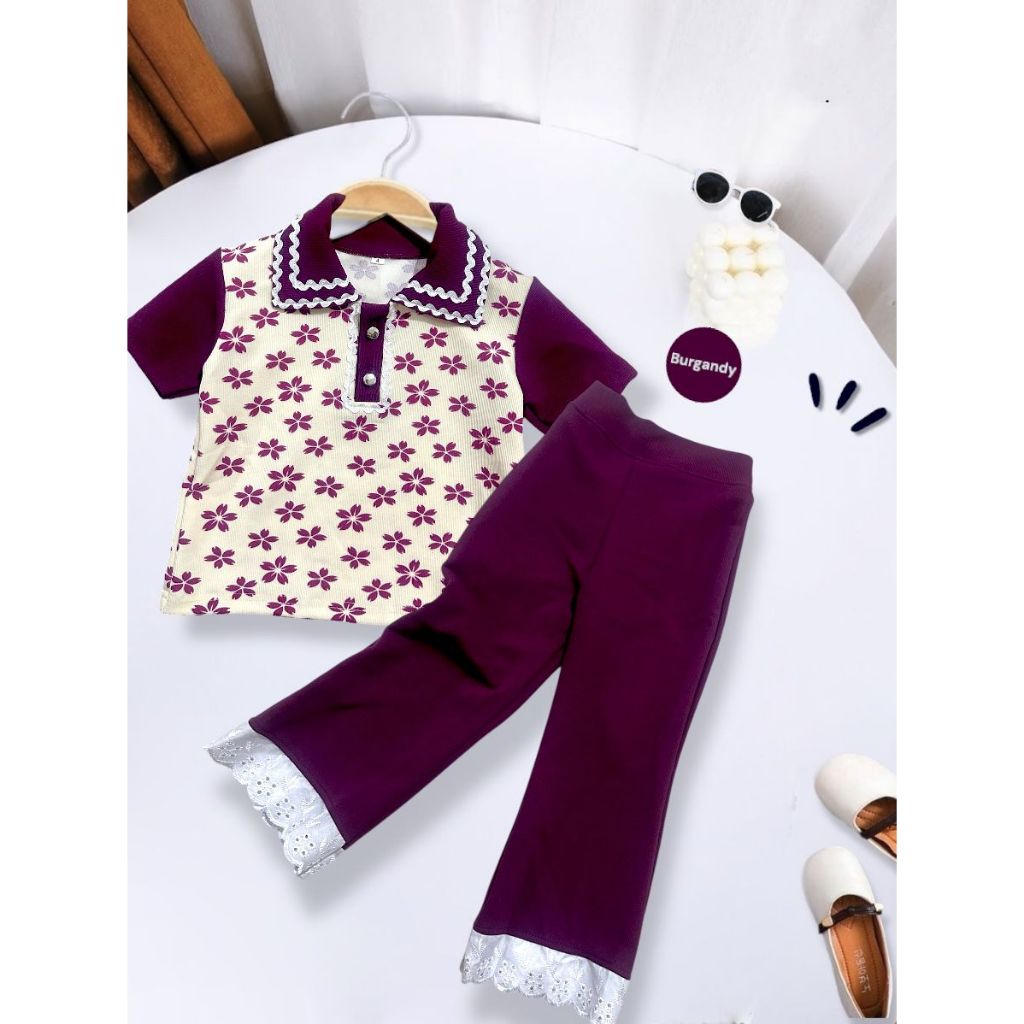 One Set Anak Perempuan Motif Bunga Bahan Knit Japan LInen usia 1 tahun sampai 10 tahun model Baju Kerah