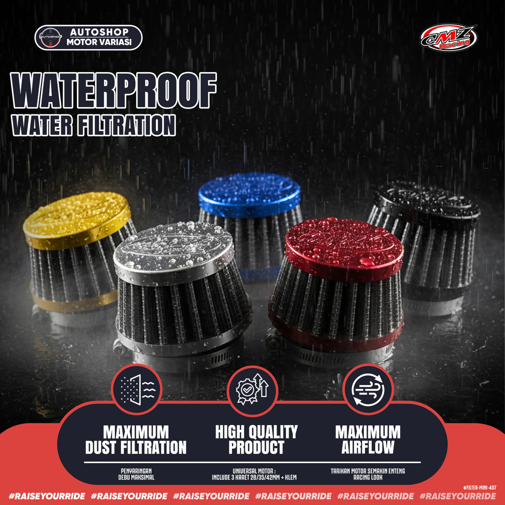 Filter MINI RACING Saring Udara Filter Motor MODEL MINI DIMETER 2.5 INCH Termasuk KARET 28/35/42 MM Universal MOTOR