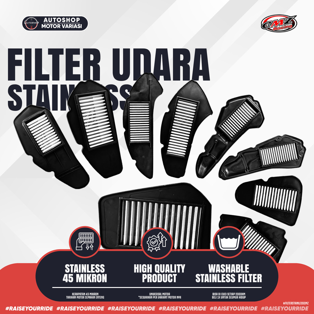 Filter Udara Stainless – Motor Vario, Beat, F1 FI, Genio, Scoopy, NMAX, AeroX, PCX, CBR 150, Lexi