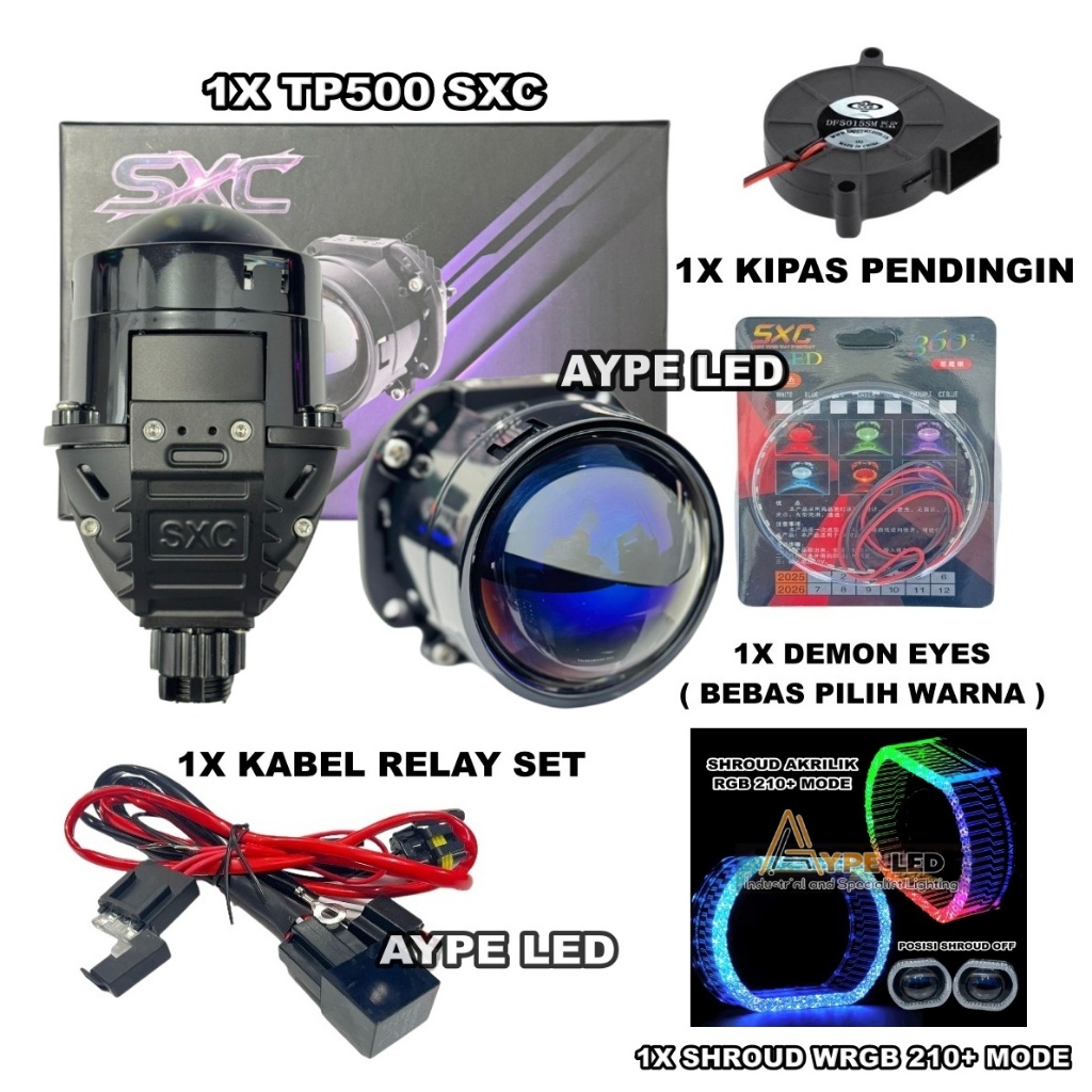 Biled Projector 2,5 Inch Bluelens Premium Sxc Tp500 Black Housing Flat Cut Off Biled Motor Mobil