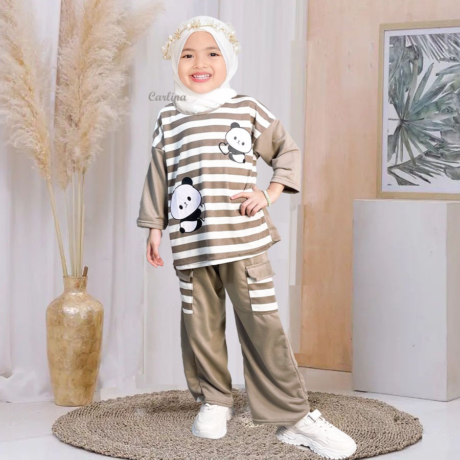 CARLINA Setelan Anak Baju Salur Panda Cute Oversized dan Celana