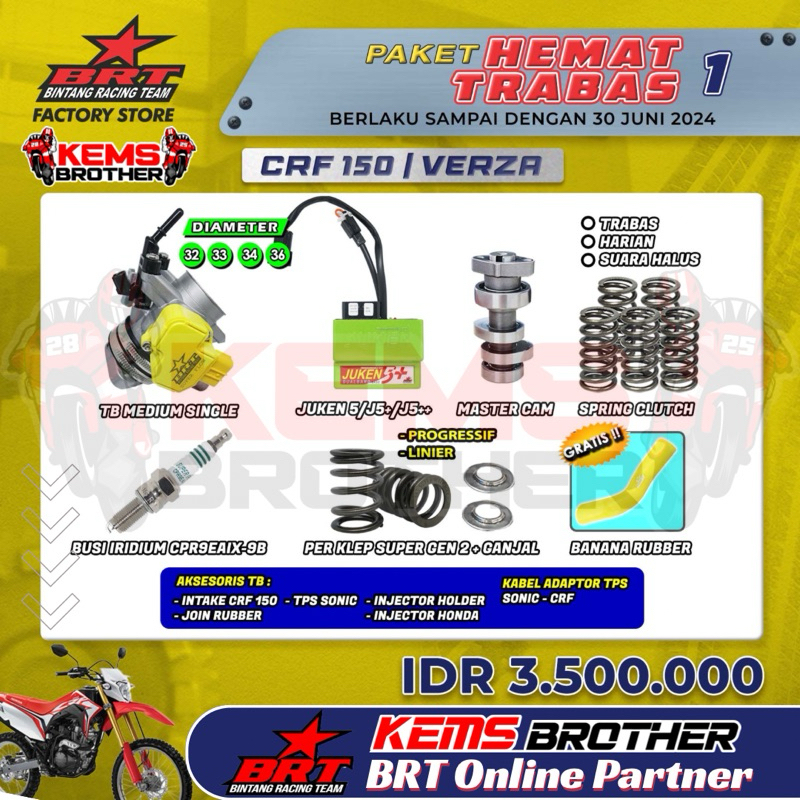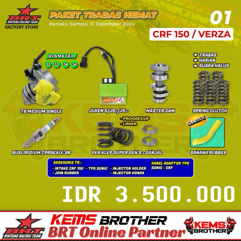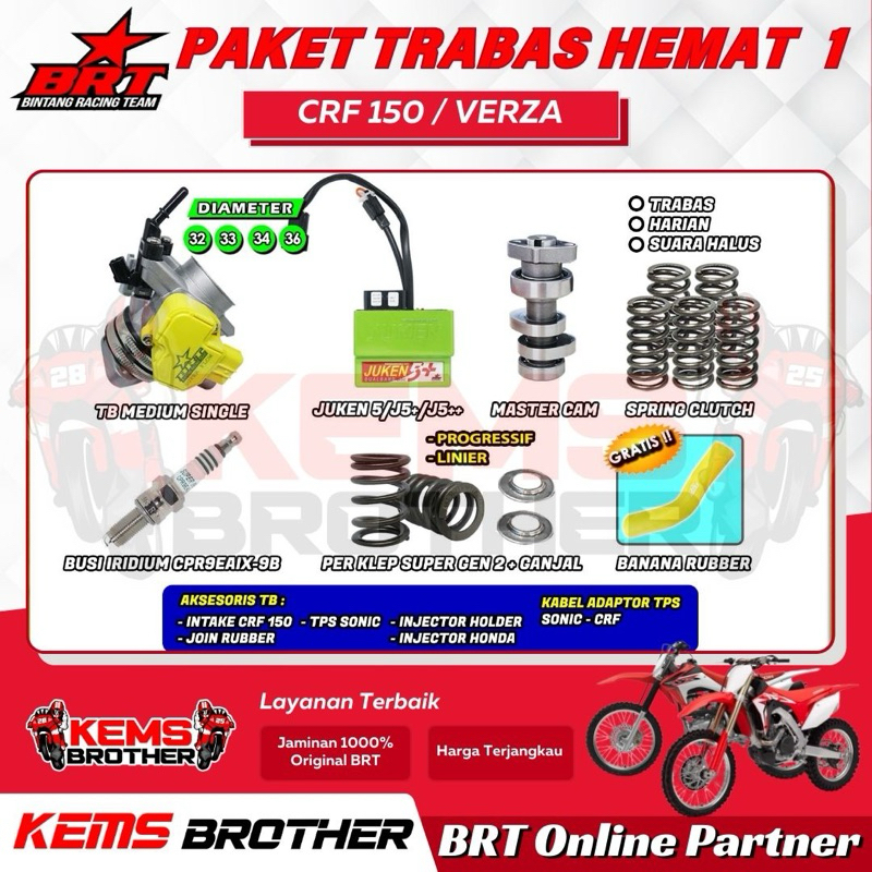 PAKET BRT CRF150 TRABAS HEMAT 1 Original BRT (TB, Ecu Juken 5+, Noken as, Perklep, Per Kopling, Busi)