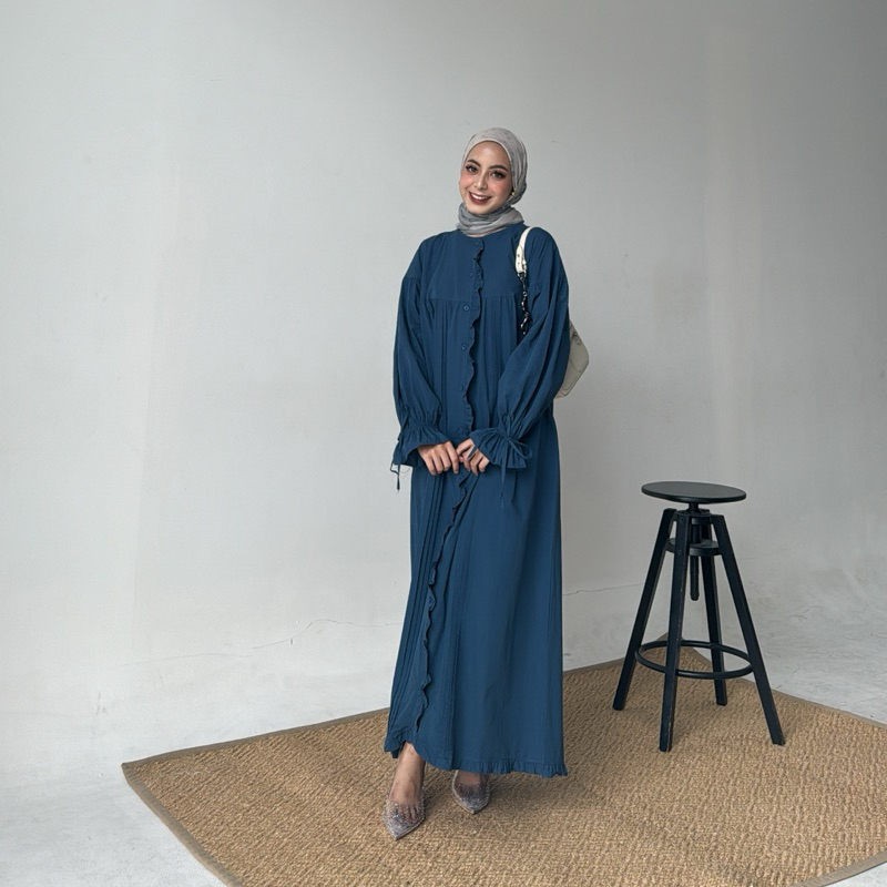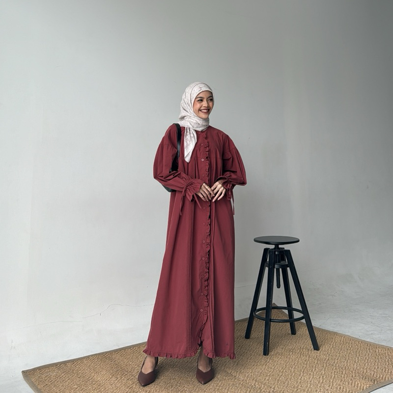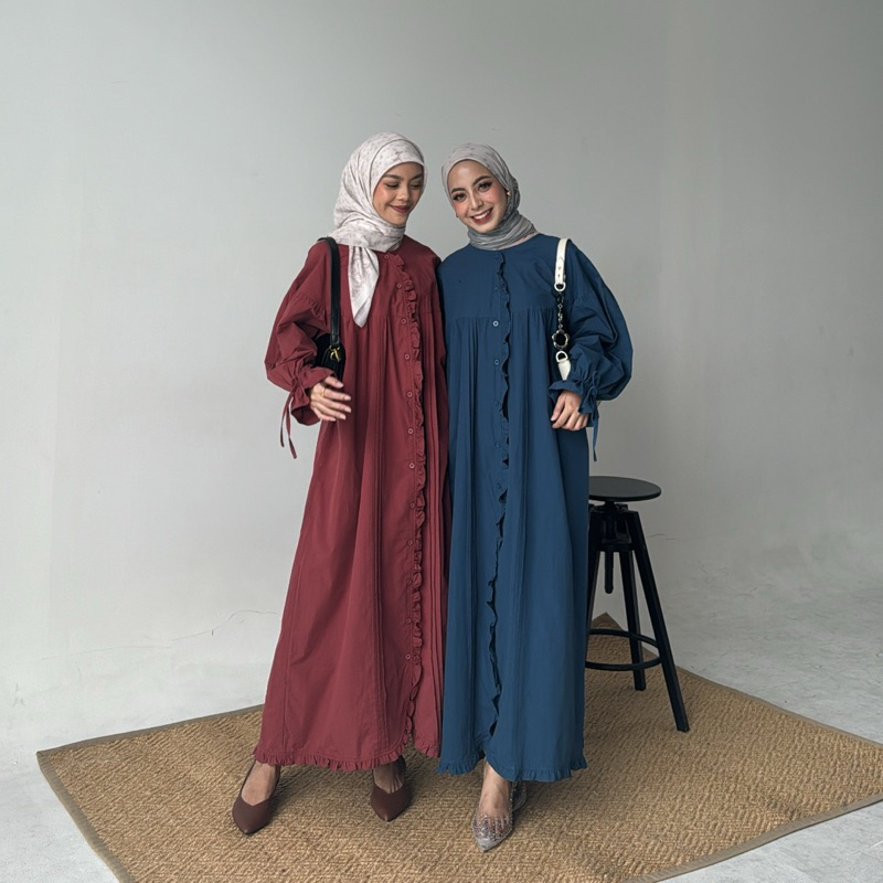 ONI (SIZE M & XL) by Yellowfacy | (Kode CSA 1805) Long Dress Gamis Wanita Ruffle Katun Poplin
