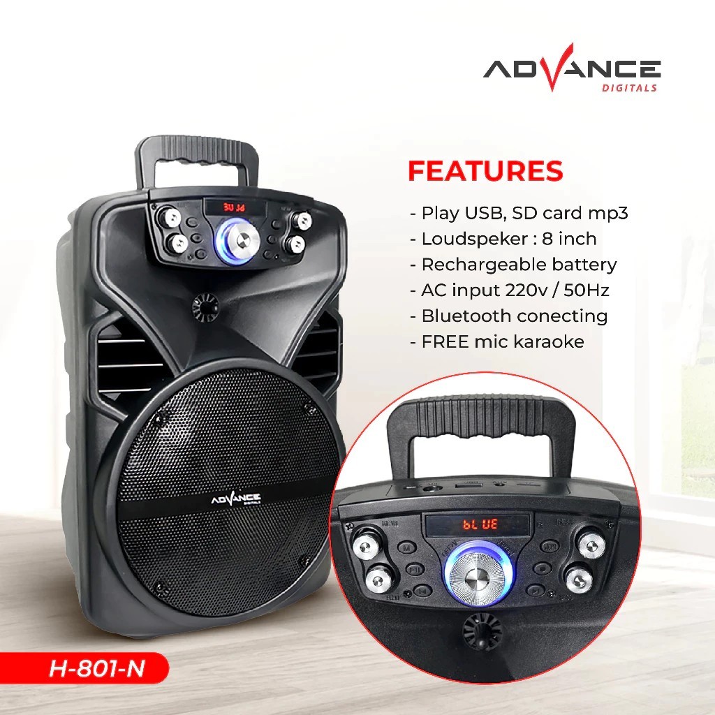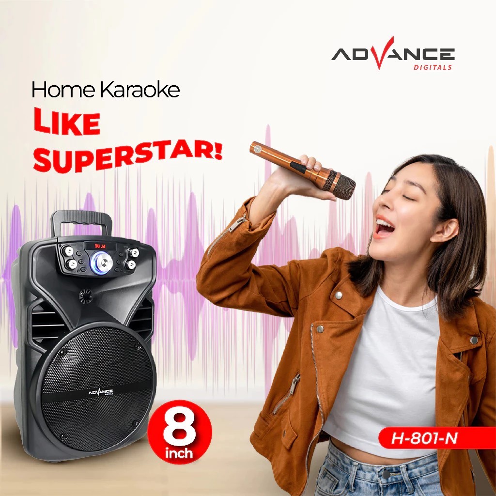 Advance Speaker H-801N/S80 Bluetooth 8 Inchs Fm Radio Xtra Power Sound Free 1 Mic Wireless & Remote