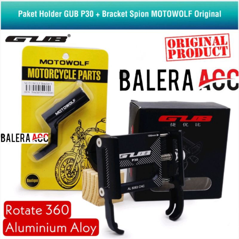 Paket Gub P30 Phone Holder + Breket Spion Motowolf Nmax Pcx Adv Vario Beat Fazzio Filano Dll