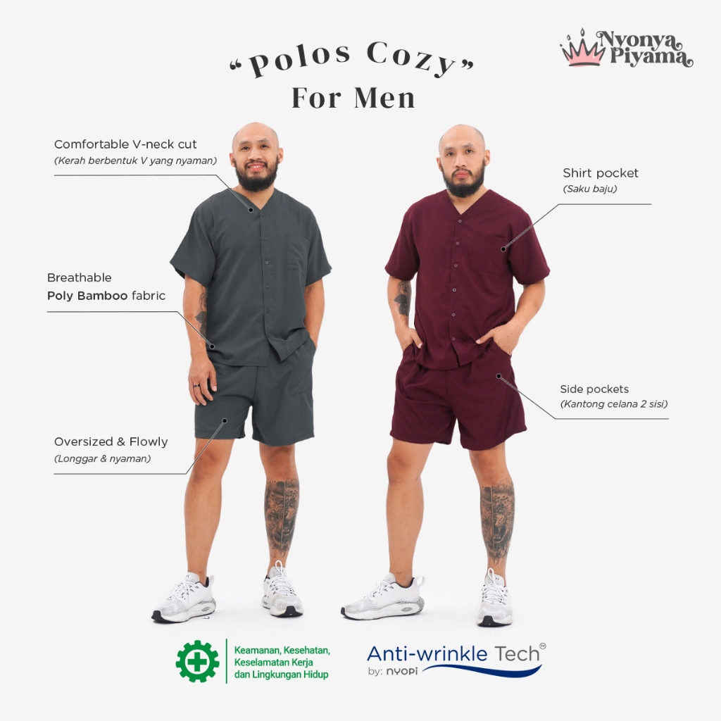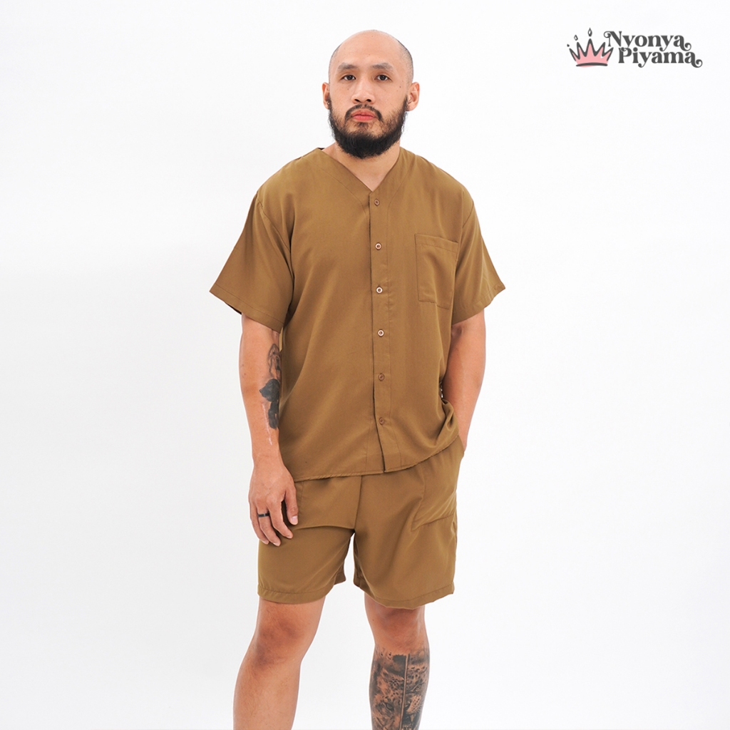 [BEST SELLER] Nyonya Piyama Poly Bamboo Oversized Cozy Set Celana Pendek Polos Pria