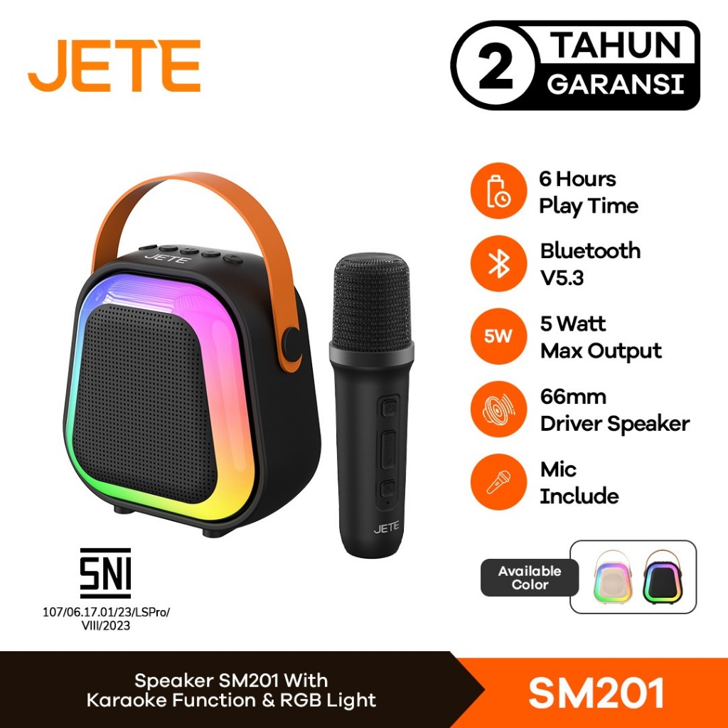 Speaker Bluetooth Karaoke Jete Sm201 5W 6H Play Time With 1 Microphone And Rgb Light - Garansi 2Th