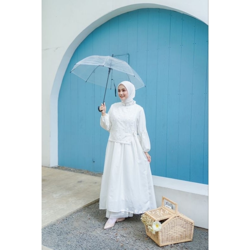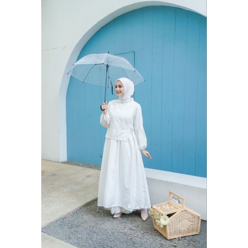 Mysha iwearmysha BETARI DRESS Gamis Putih Kondangan Korean Style Size S M L XL XXL BROKEN WHITE