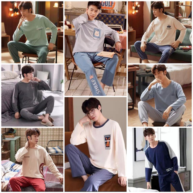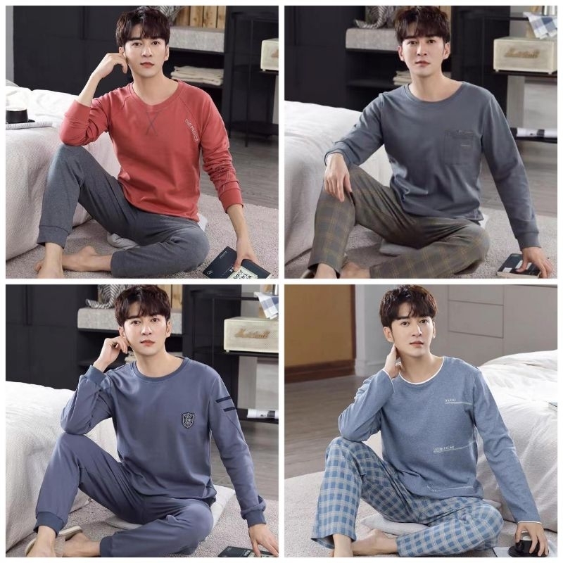 Baju tidur pria piyama cowok setelah bahan katun kaos premium import murah C14-D1