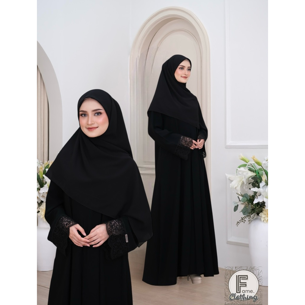 Fame.Clothing Abaya Meena/ Gamis jetblack/ Abaya hitam/ Gamis umroh