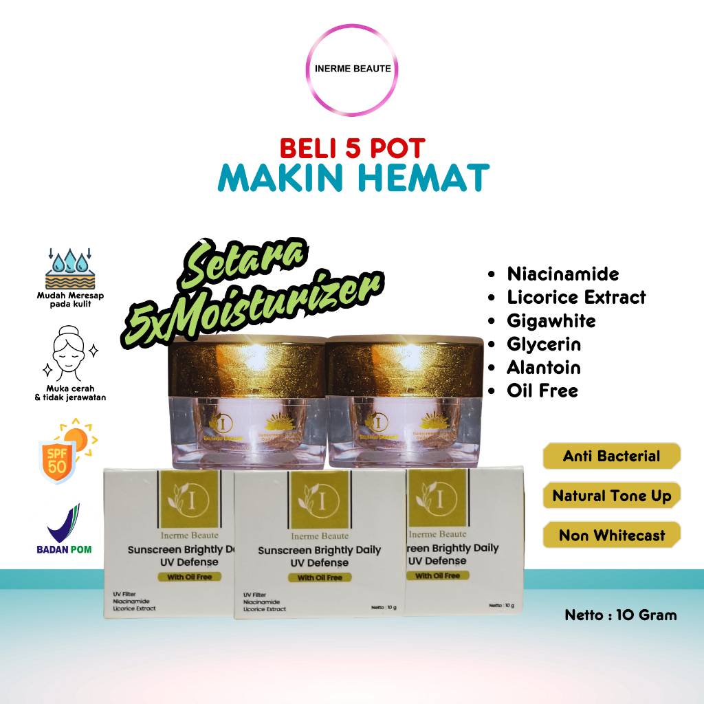 (Isi 5 Pot) Inerme Beaute Sunscreen Brightly Paket Reseller Isi 5 - Sunscreen Glowing