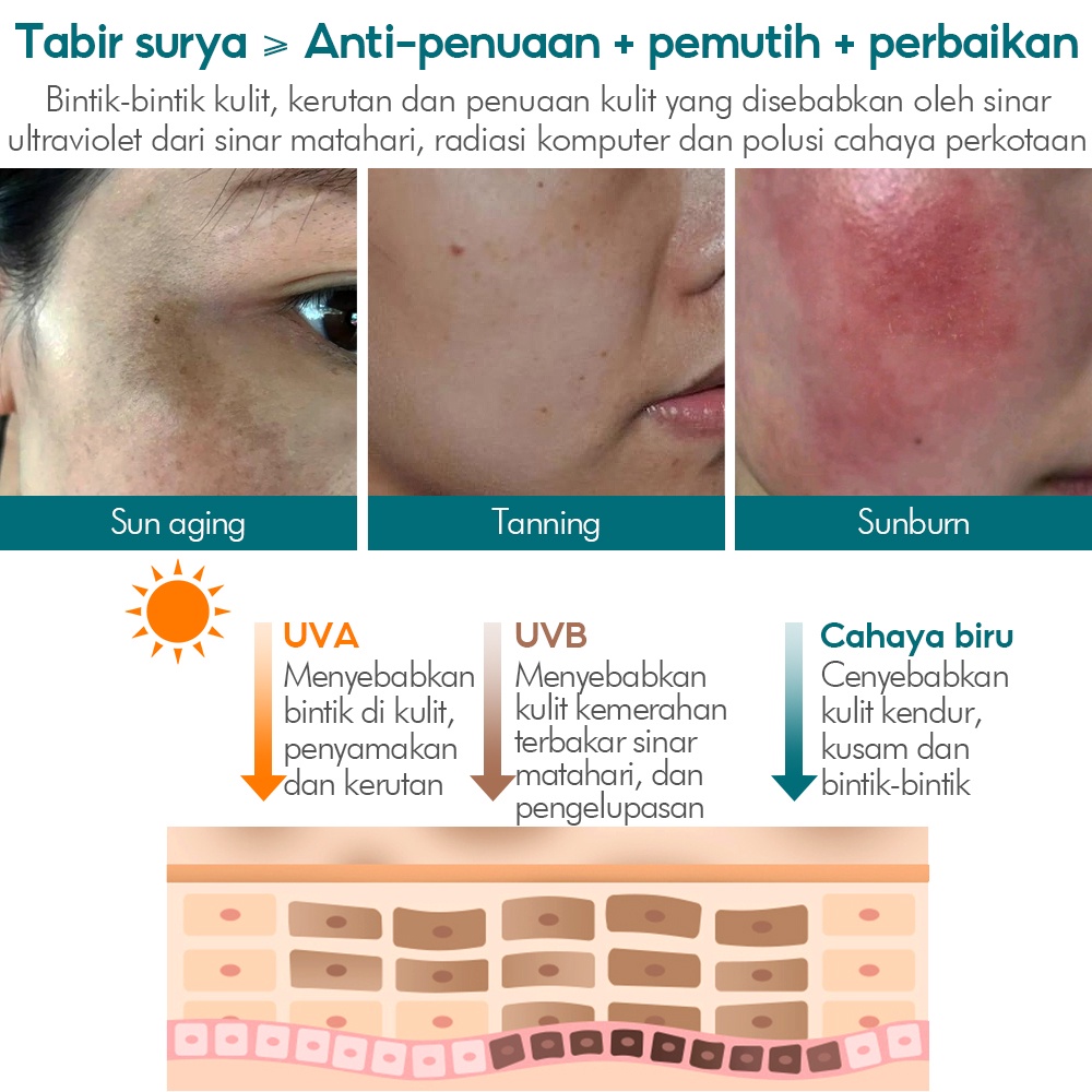 Vibrant Glamour Sunscreen Pemutih Ganda 50G Spf50+ Pa+++ Uva/Uvb, Anti-Aging, Pengurangan Noda, Dan Melembapkan Memperba