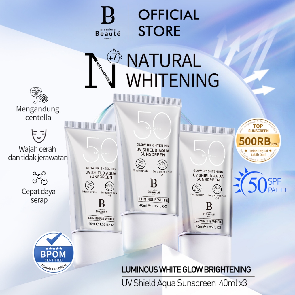 Premiere Beaute [Sunscreen 3Pcs] Sunscreen (Spf 50 Pa+++) 40Ml Suncreen Wajah Uv Shield Sun Protect Sun Block Suncreen W