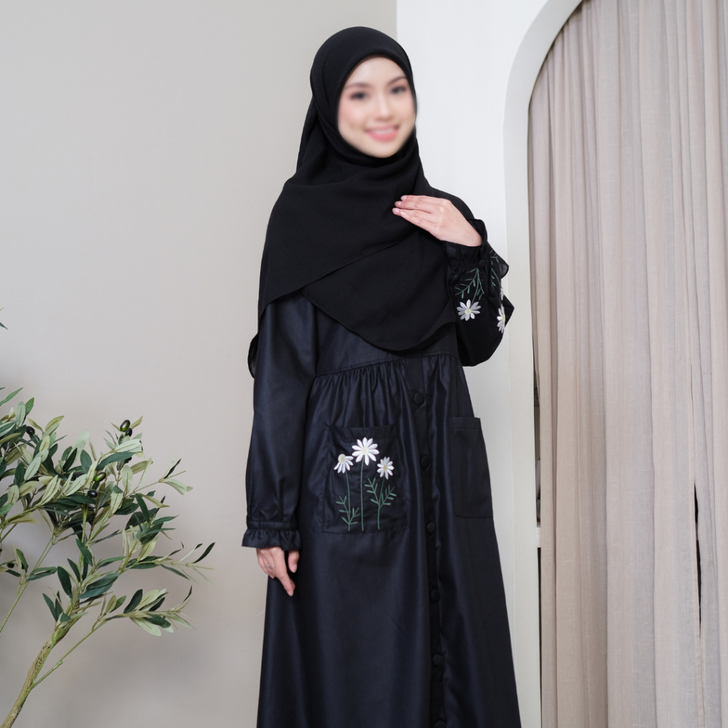 KUPNAD | Gamis Bordir Bunga Simpel Muslimah Syari Busui Friendly Adem, Modern & Nyaman | Daisy Dress