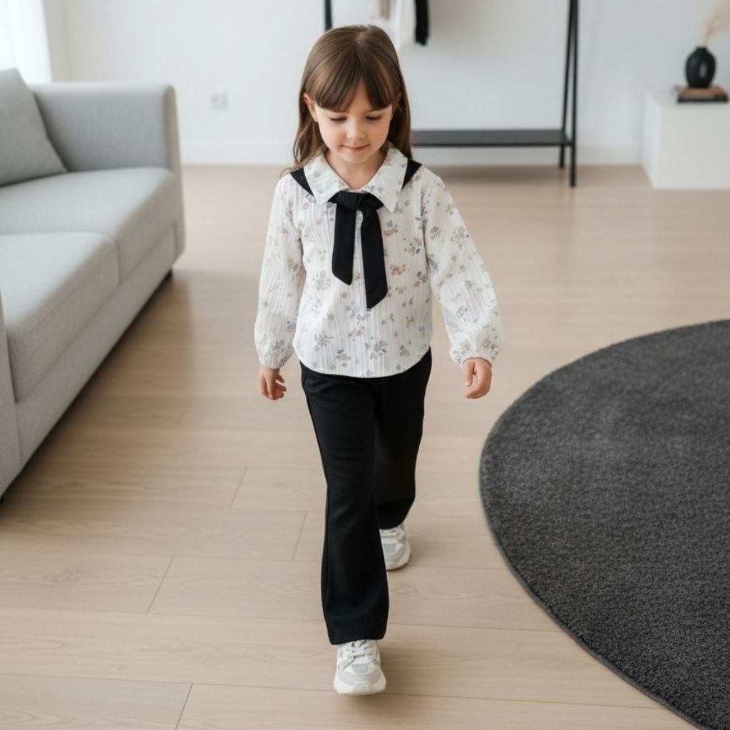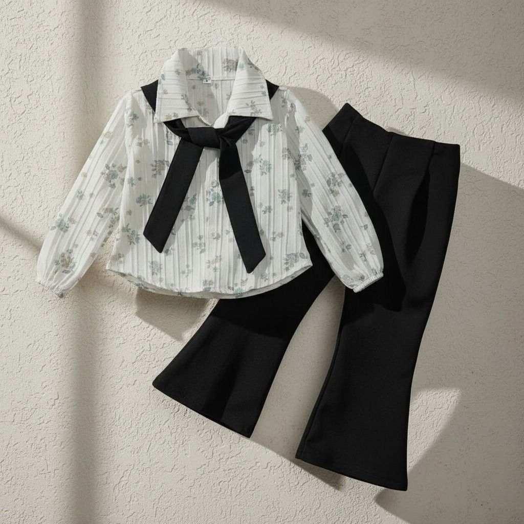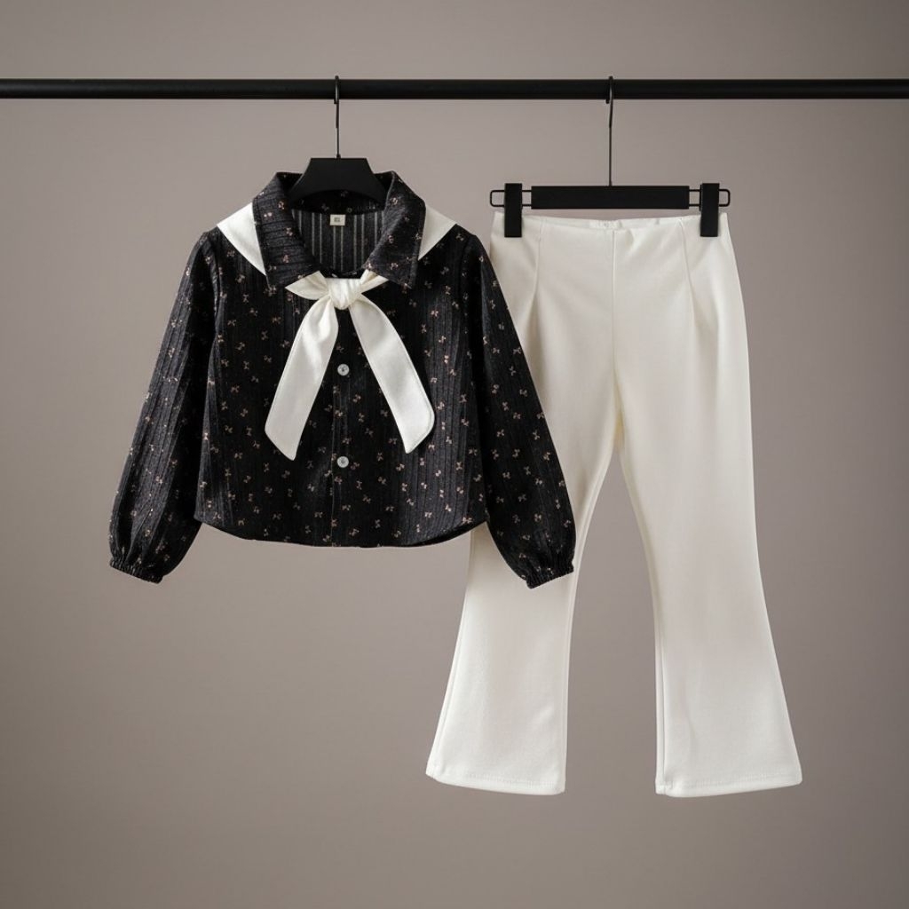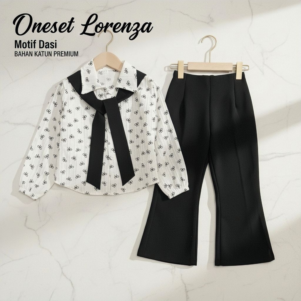 Setelan Baju Anak Lorenza Koreanstyle Usia 2-10 Tahun Oneset Anak Perempuan Motif Pita Celana Cutbray Highwaist Setelan Anak Perempuan Kekinian