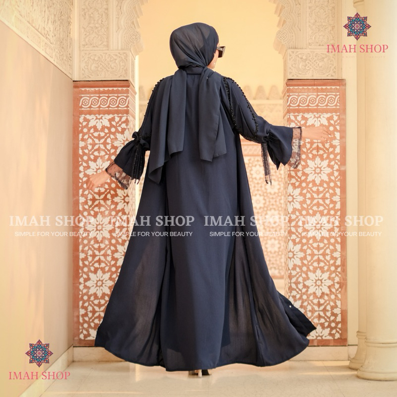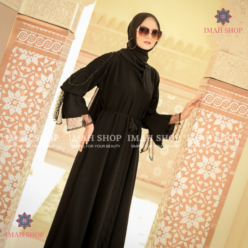 Abaya Hitam Turkey Gamis Syari Muslimah Bahan Jetblack Hitam Kombinasi Tile Polkadot Imah Shop Dress Arab Saudi 969