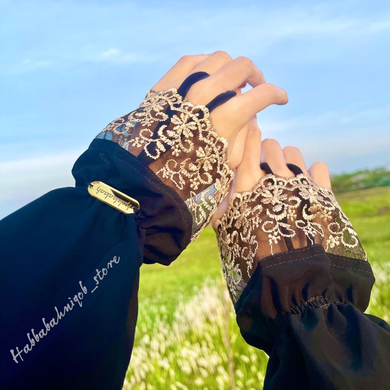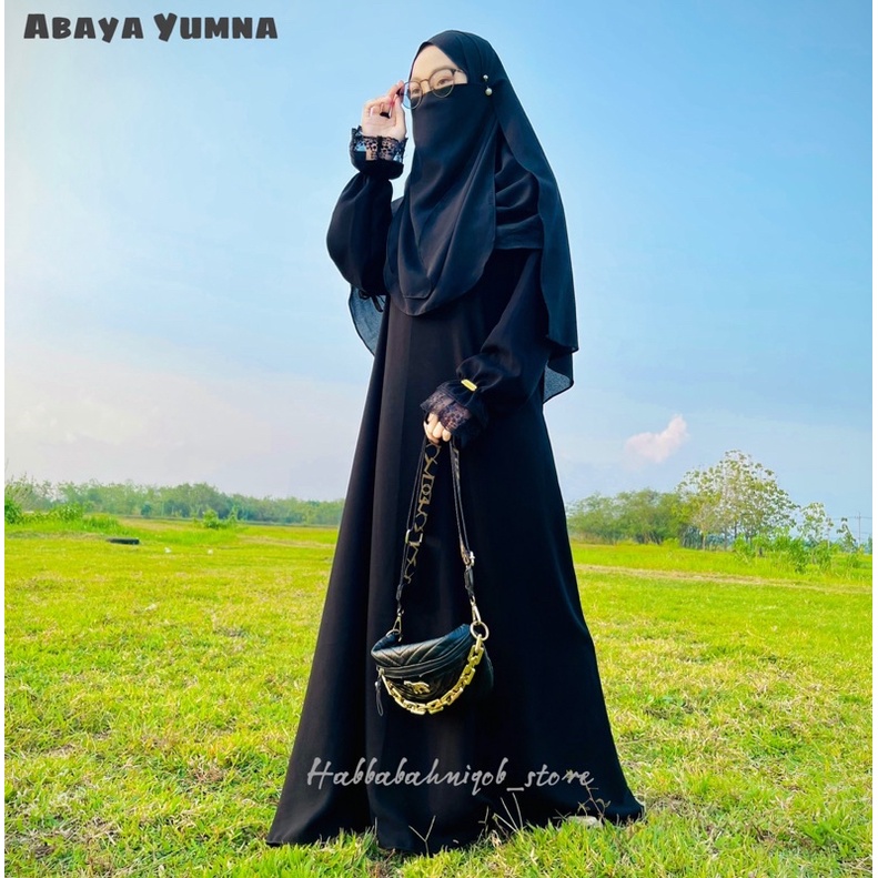 Abaya Hitam Jetblack Renda Gold / Hitam – Gamis Arab Syar’i Elegan Bahan Adem Busui Friendly