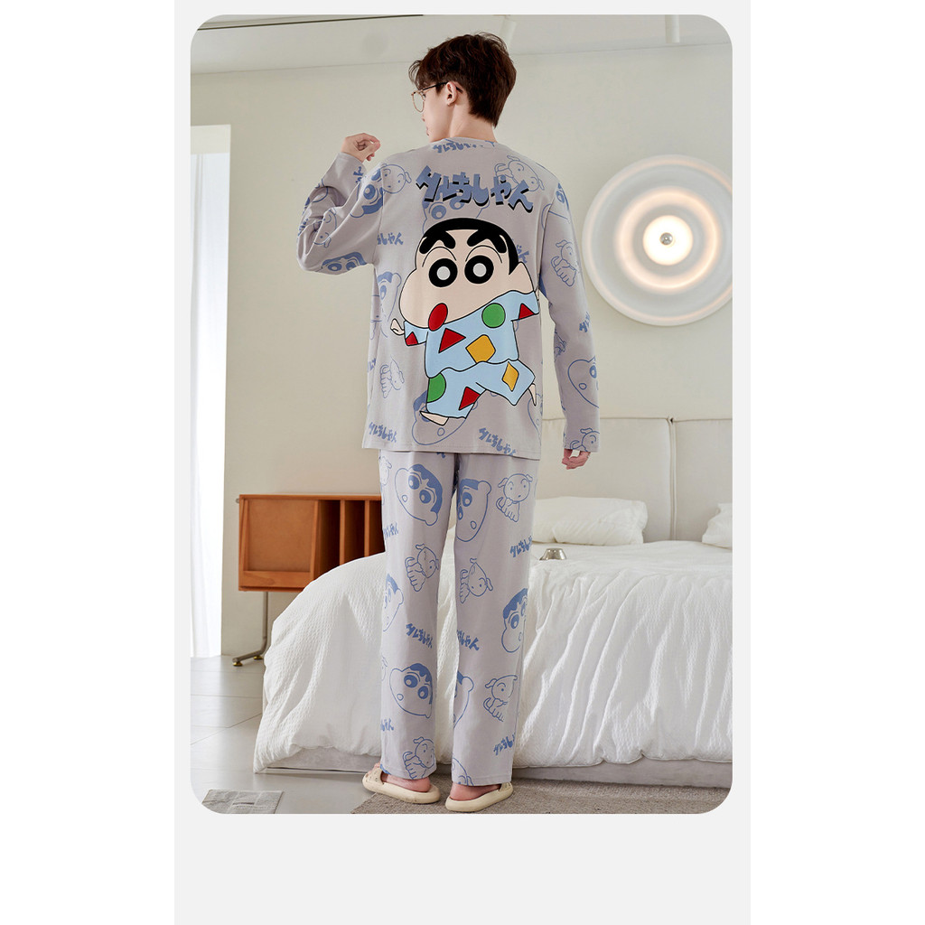 Slim Lift -Set Piyama Pria Bergambar Kartun Lucu Dengan Kerah Bulat Dan Lengan Panjang