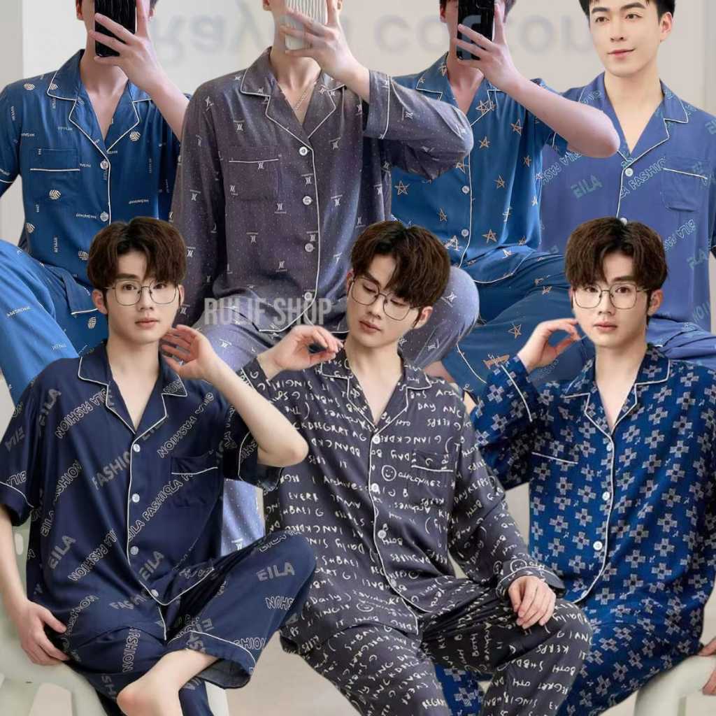 RULIF Baju Tidur Pria Piyama Dewasa Bahan katun rayon /SET PRIA CP PP KRAH KANCING PREMIUM 1401-1501