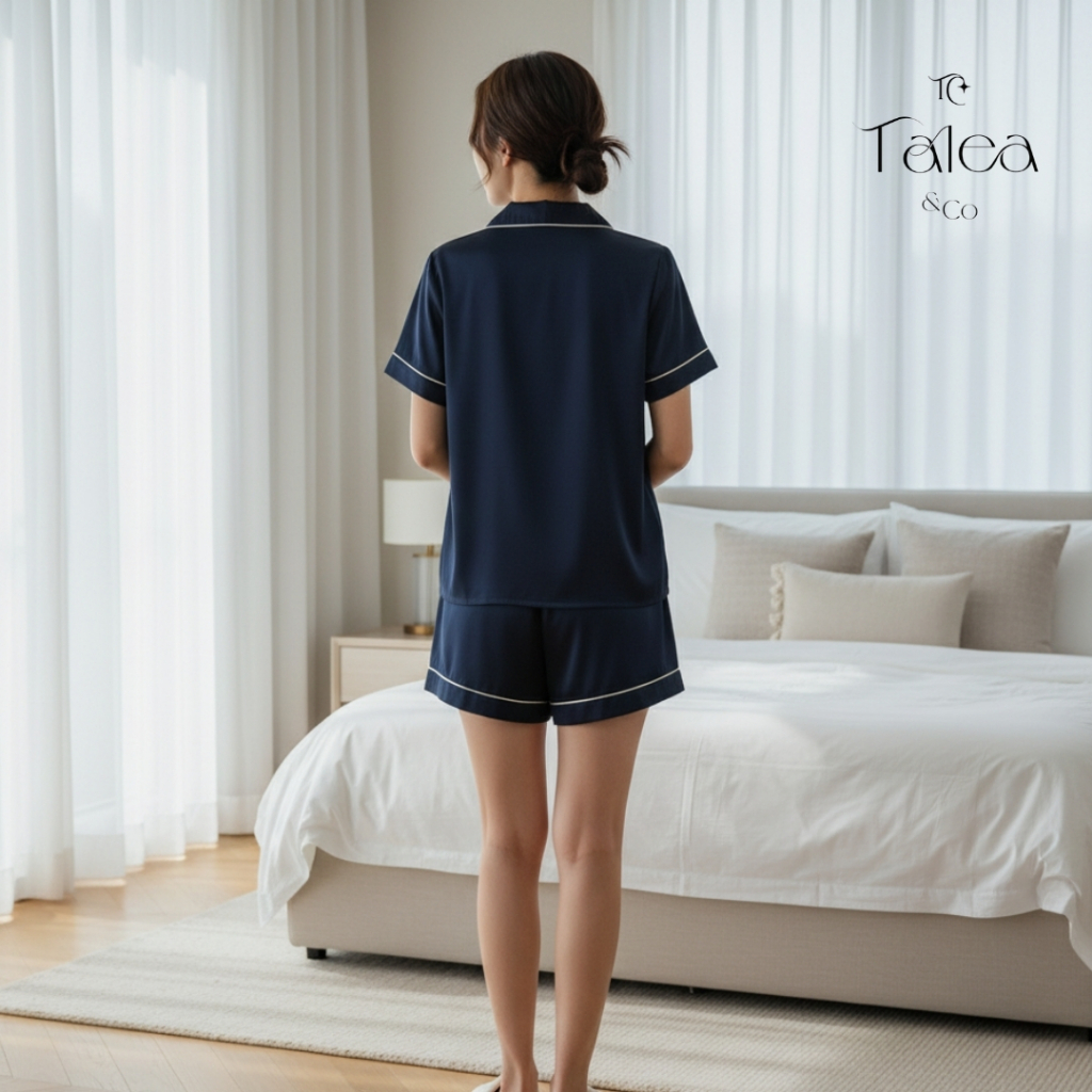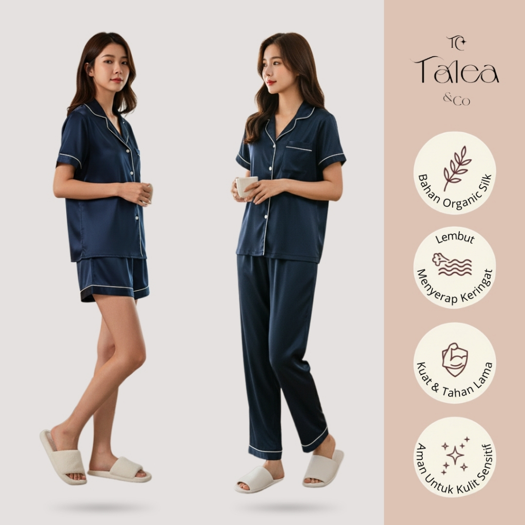 Pajamas Wanita | Pajamas Wanita Premium | TALEA & CO Piyama Organic Silk Navy