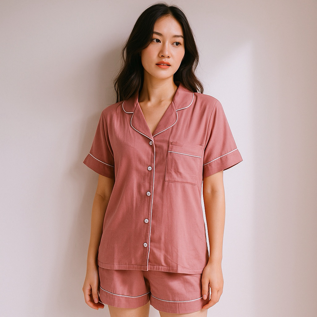 PIYAMA TIDUR WANITA / SUPER FINE RAYON TWILL / CELANA PENDEK LENGAN PENDEK / HP RAYON ELLIE