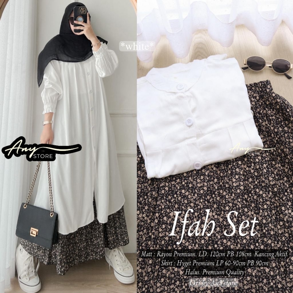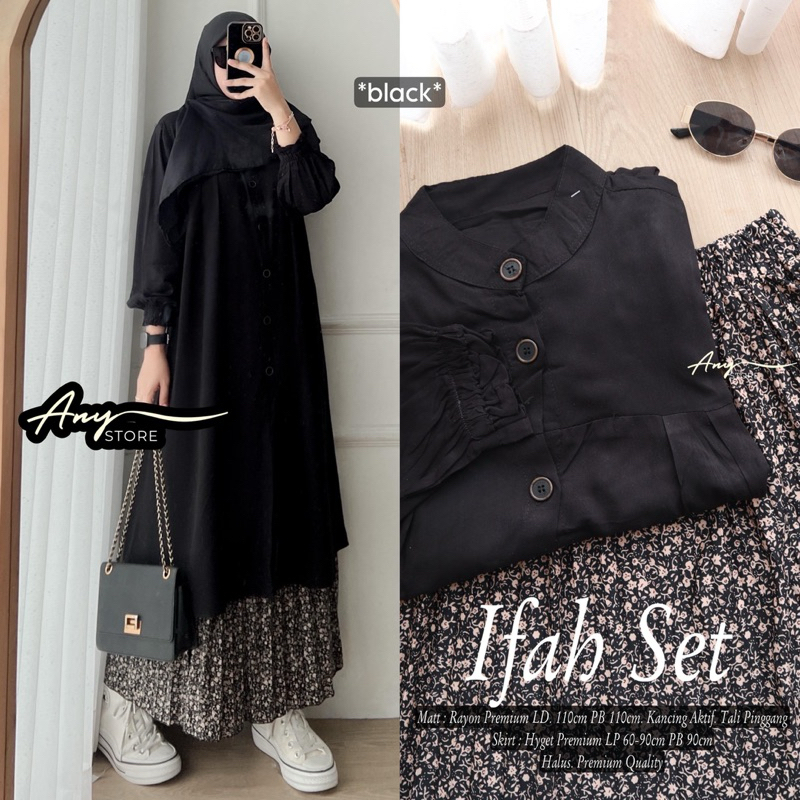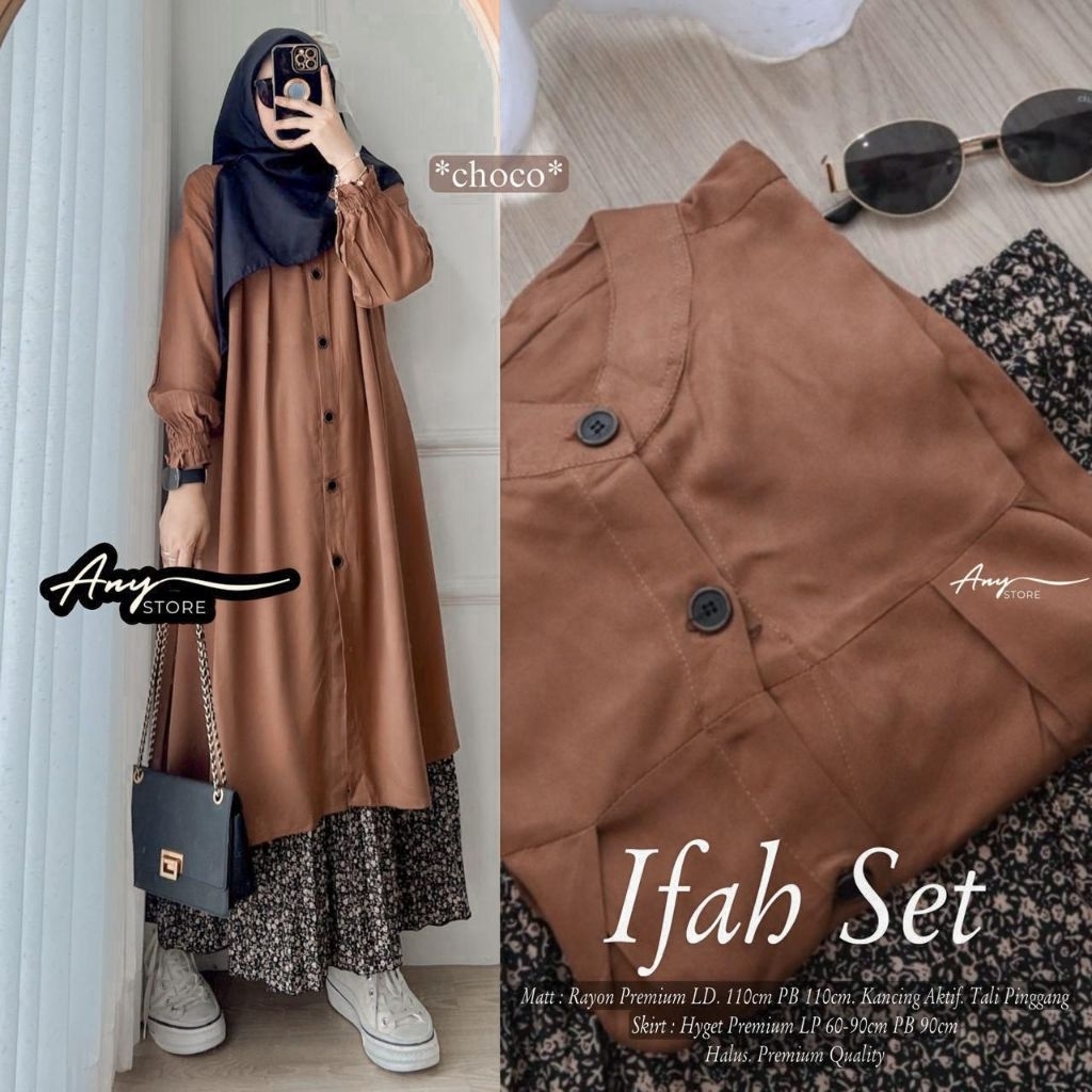 ifah setelan long tunic jumbo ld 130 ld 140 by A.N.Y rok panjang floral skirt plisket bunga long tunik oversize big size tunik full kancing setelan