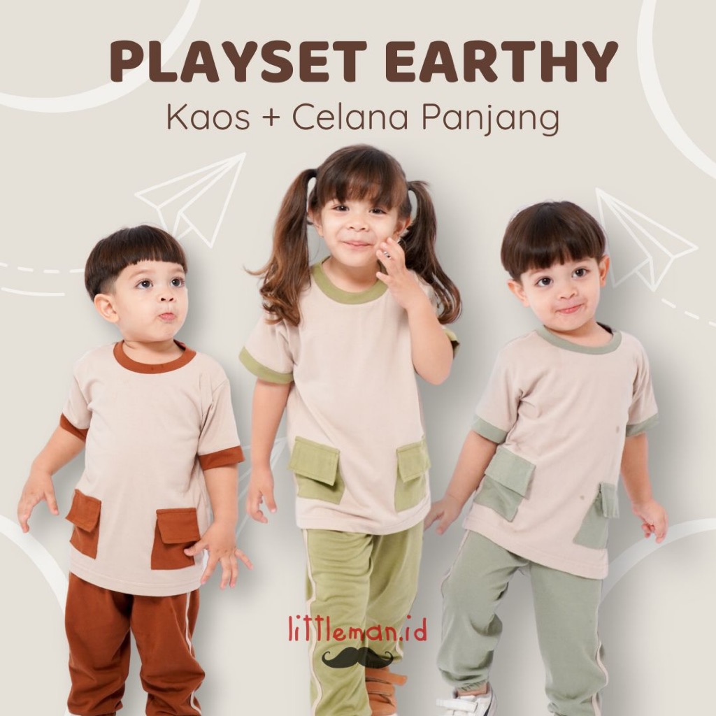 Playset Anak Earthy Series Setelan Kaos Baju Celana Panjang Laki Perempuan Premium Littleman.id