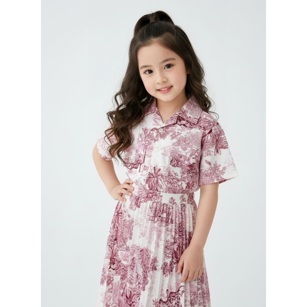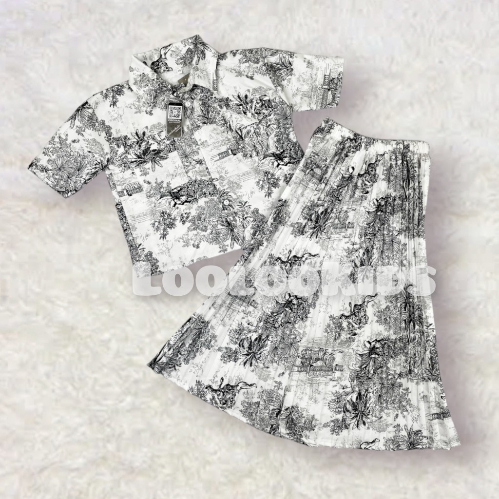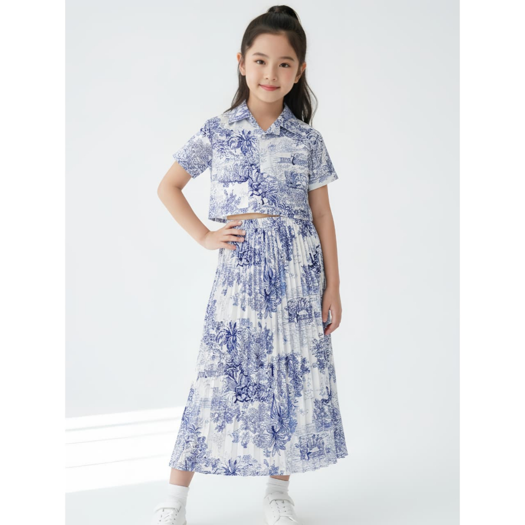 Setelan Crop Korean Fuji Anak Perempuan Usia 1-9 Tahun - One Set Rok Plisket Baju Wanita Model Terbaru - Stelan Kameja Cewek Viral