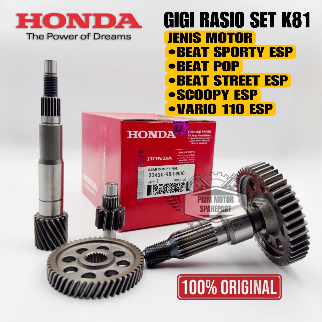GIGI RASIO SET K81 ORIGINAL 100% HONDA BEAT ESP,BEAT SPORTY ESP,BEAT STREET ESP,SCOOPY ESP, VARIO 110 ESP KUALITAS HONDA