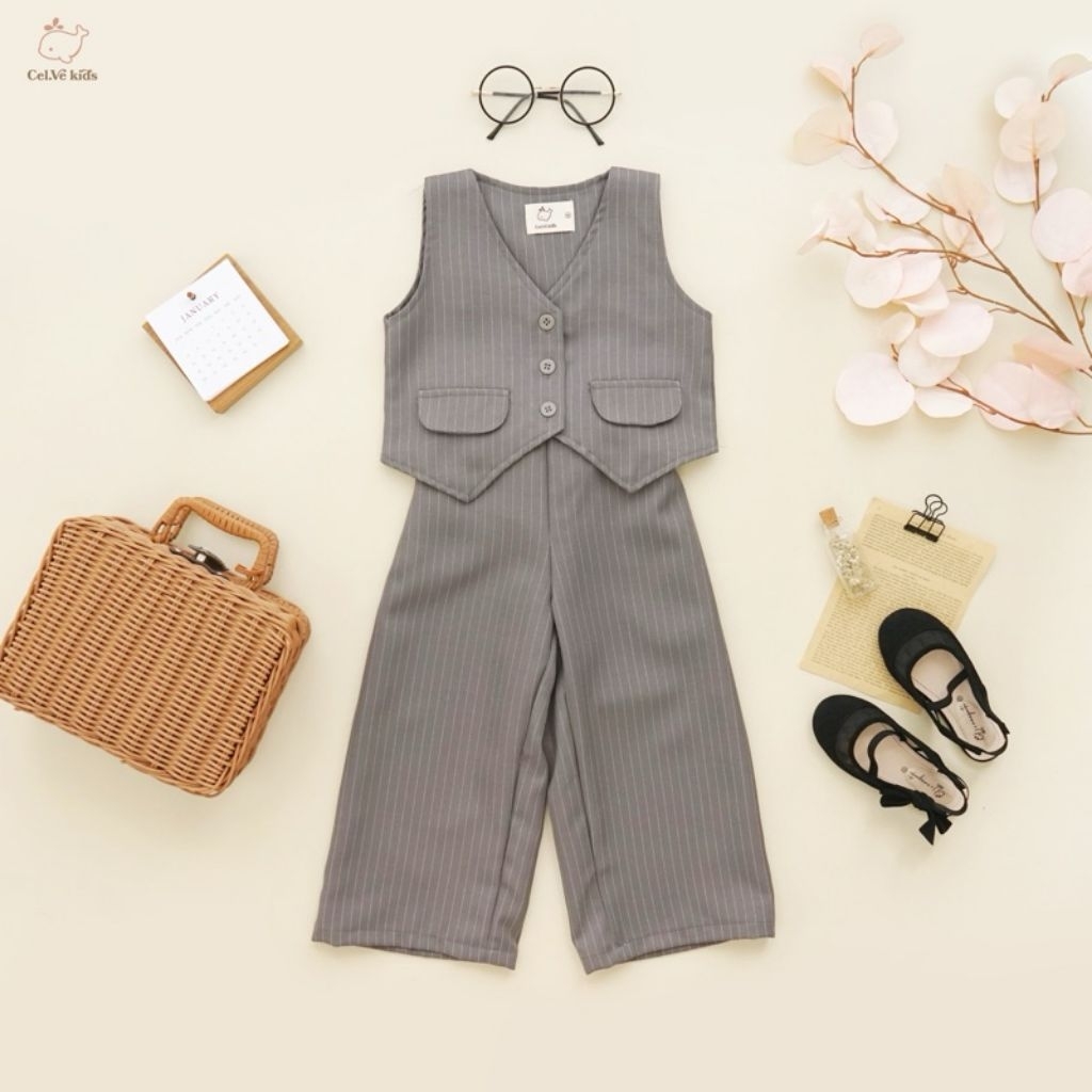 chakistore Stelan Valentina Set Baju celana Anak Perempuan Korean style semiwool usia 1-11thn