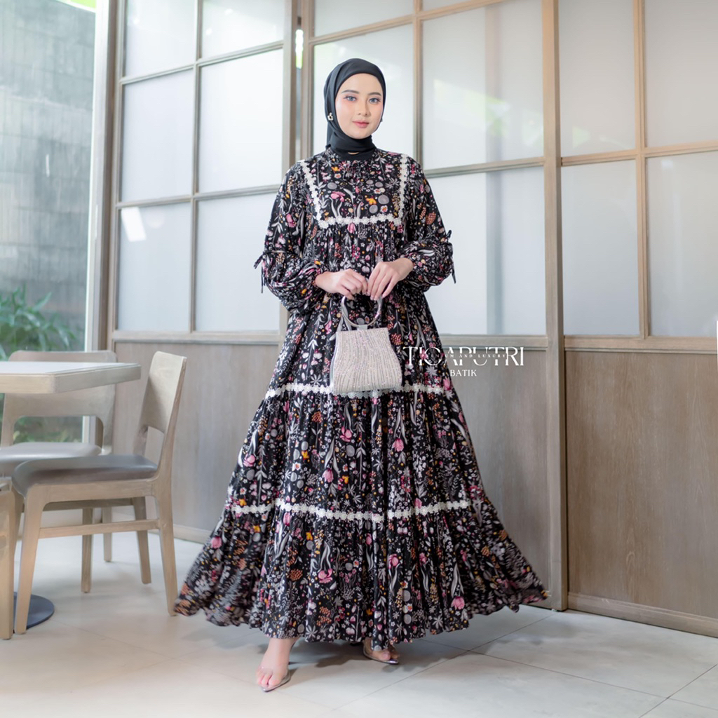 Hayvana Renda Dress - Gamis Rempel Renda Gamis Susun Lengan Balon Pita Gamis Rayon Premium Gamis Rayon Motif Gamis daily hijab Gamis