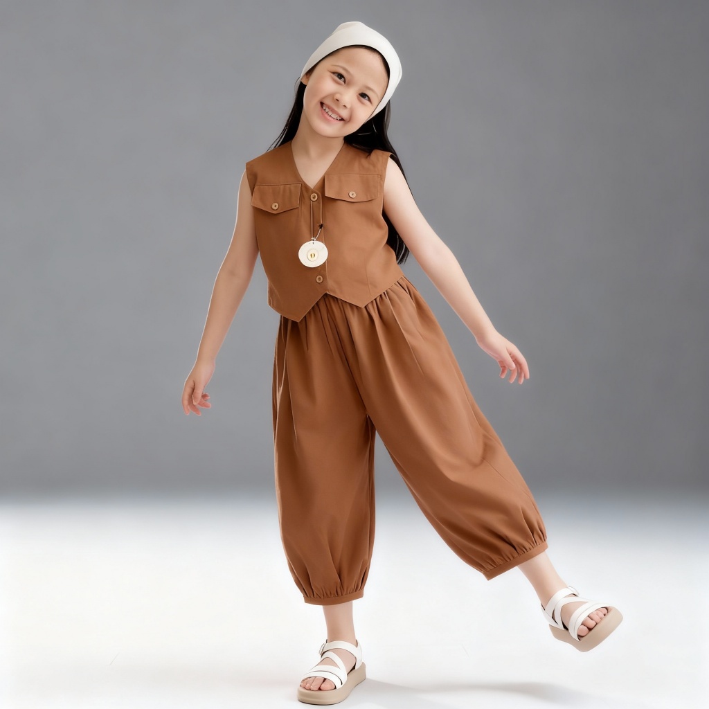 Setelan Anak Perempuan Usia 3-12 Tahun| Olivia One Set Anak Perempuan Bahan Katun Linen