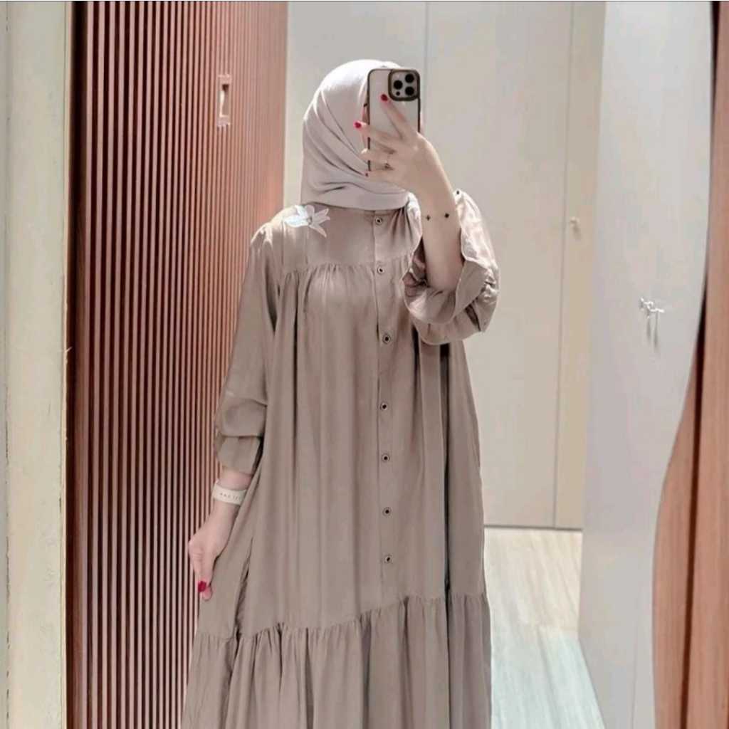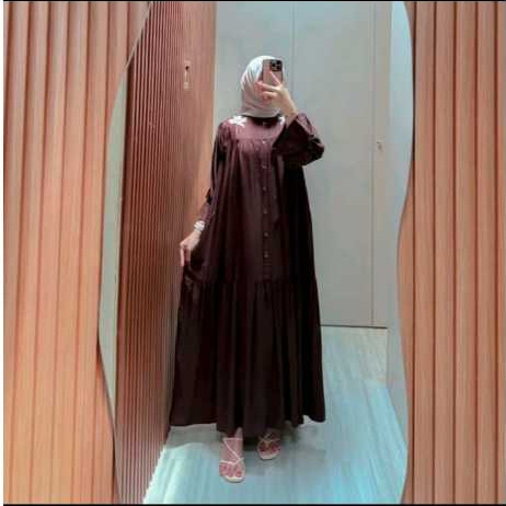 Nagita Dress Gamis Rayon Twill Motif Bunga Bordir original