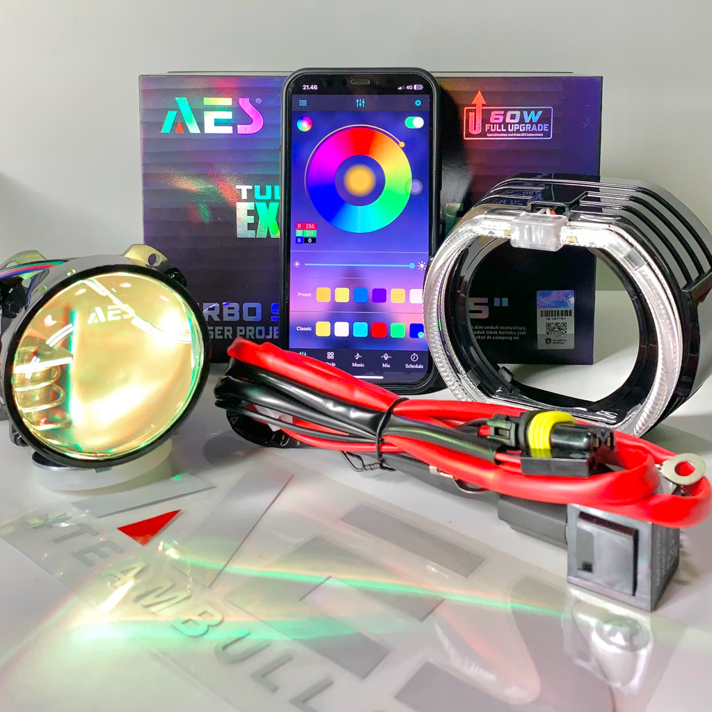 Paket Lengkap Aes Biled Turbo Se V2 Biled Projector 2,5 Inc Sett Devil Rgb Blue Lens